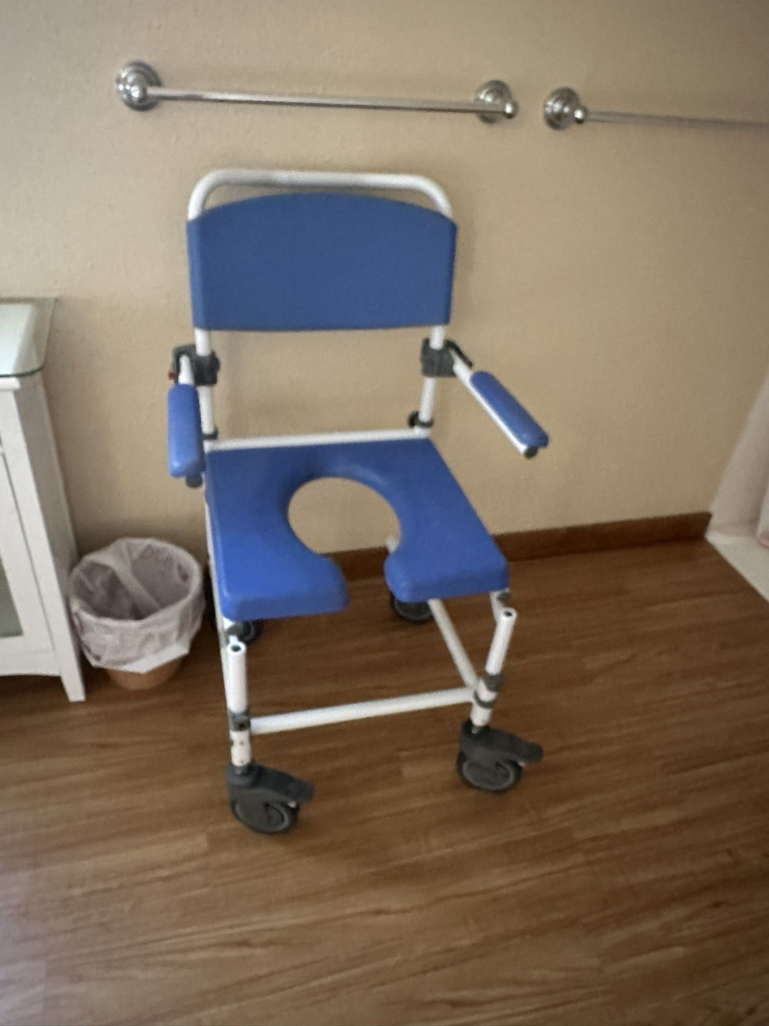 Shower Chair On Wheels Used Only A Couple Times- Comes With Portable Commode Bucket