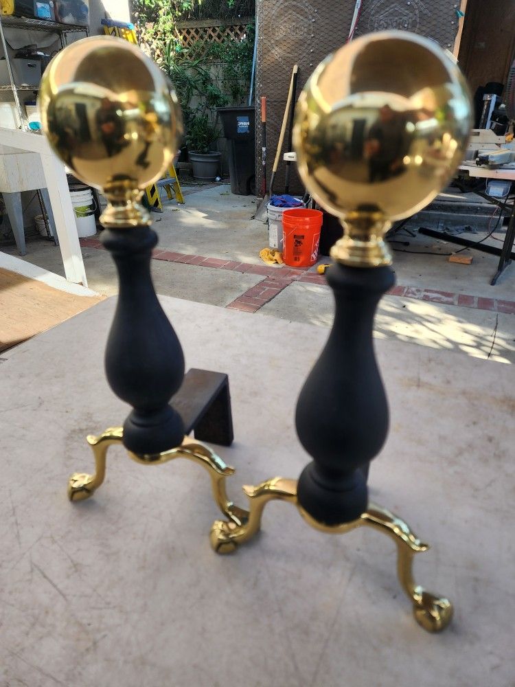 Vintage Fireplace Andirons ball top and Brass Claw Feet **For Fireplace