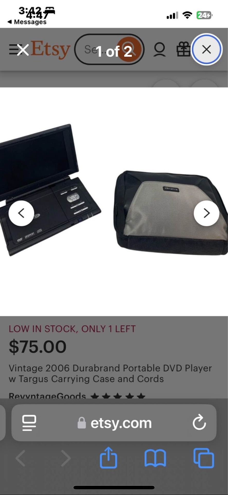 Portable DVD Player 7.5” Screen w/carry case, re-chargeable Li-Ion battery & charger