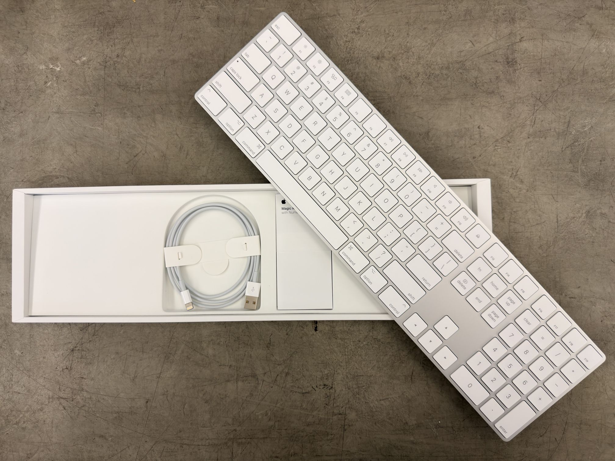 MQ052LL/A Magic Keyboard with keypad. Never used. Box is a little beat up from storage.
