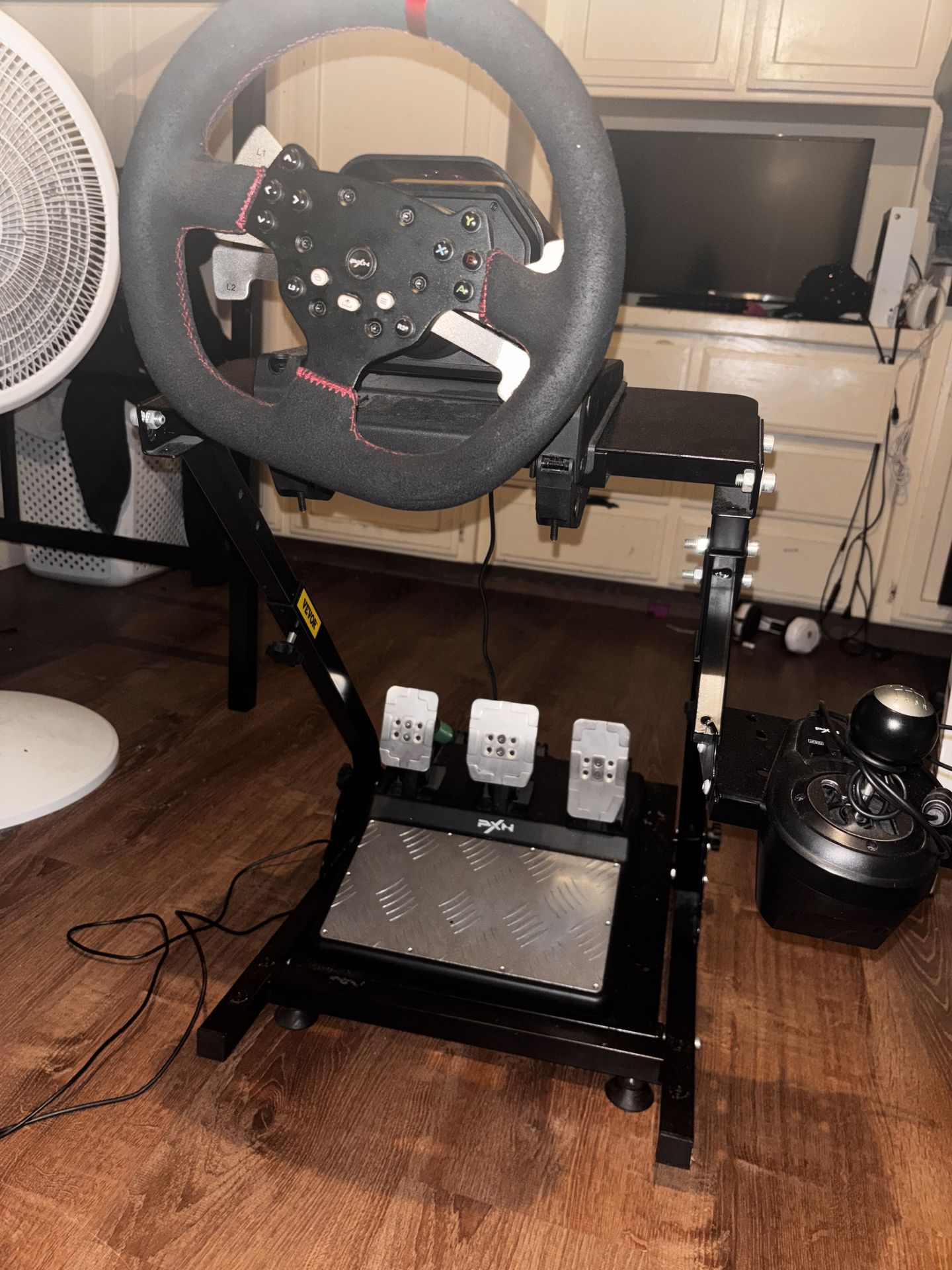 Selling my full racing wheel setup in great condition. Everything works perfectly and is ready to plug in and play. ✅ Steering wheel ✅ 3 pedals (gas, brake, clutch) ✅ Shifter included ✅ Heavy-duty adjustable metal stand ✅ Stable and doesn’t shake while driving ✅ Compatible with Xbox, PS5, and PC Perfect for games like Forza, Assetto Corsa, F1, Need for Speed, and more. Feels way more realistic than using a controller. Everything is mounted and ready to go. Great setup for beginners or anyone trying to upgrade their racing experience. Condition: Used, well taken care of Location: Bakersfield 💰 Price: $350 🔁 Willing to trade for a go-kart