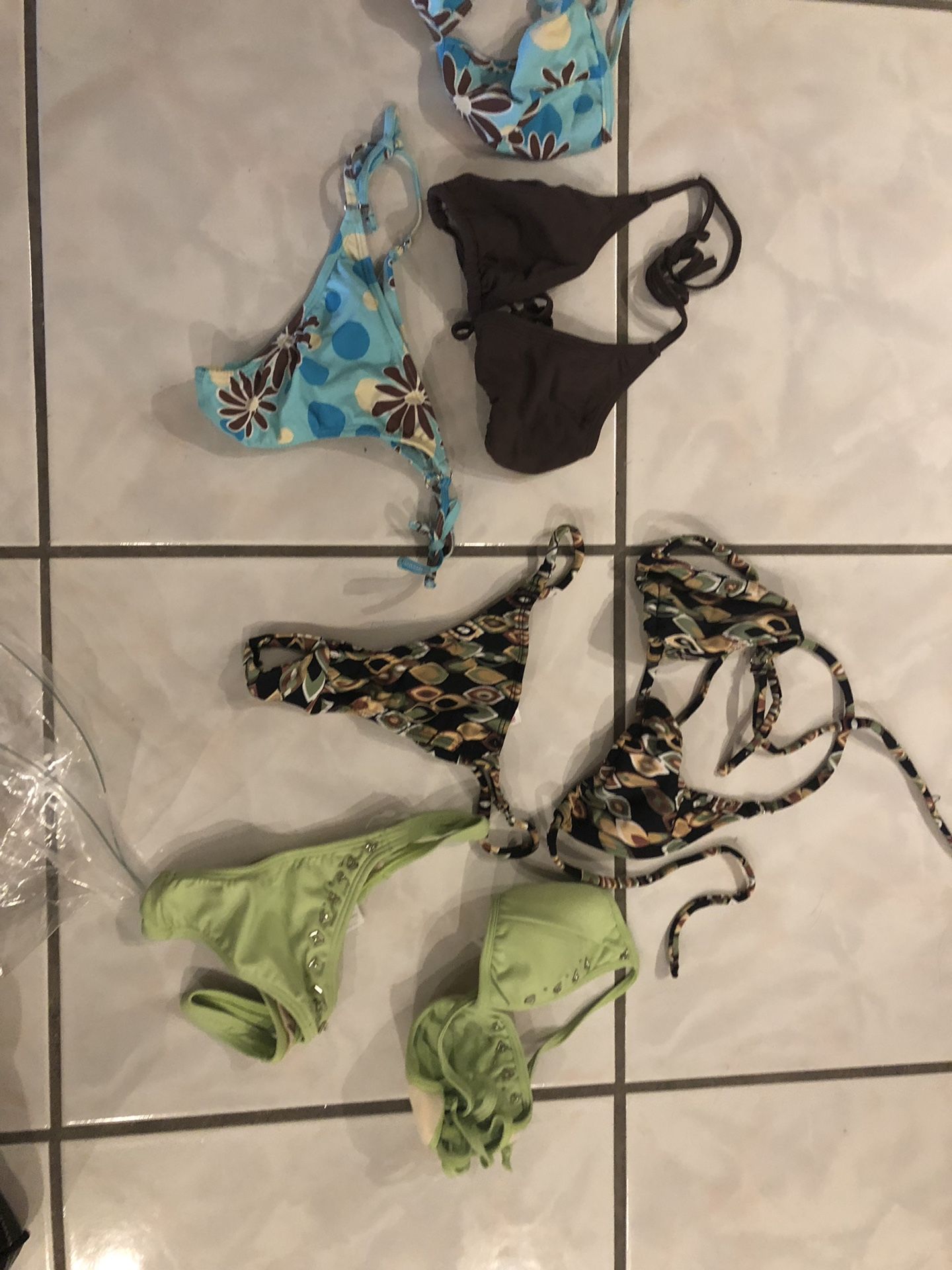 Brand new bikinis from Argentina for sale $40 each or make me an offer for a bag full of them . Brazilian cut, normal, high waist and thongs also t backs.
