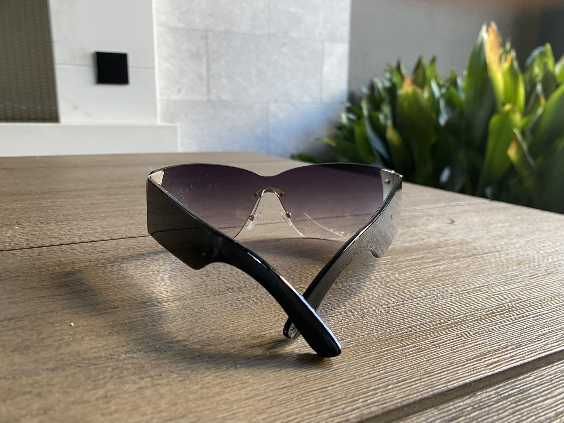 $25 or obo Bold wraparound shield sunglasses with a black frame and gradient purple/black lens. Lightweight, futuristic look, perfect for streetwear, fashion fits, or daily wear. Condition: Pre-owned with some surface wear, but fully functional and still stylish. Pickup preferred. Offers welcome!
