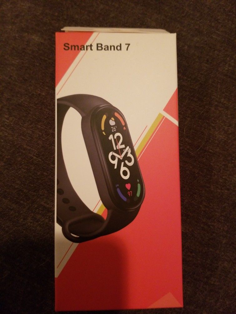 Smart Band 7 smart watch. Brand new never opened. Options include: heart rate, blood pressure, steps, incoming call, WeChat, Twitter, Facebook, alarm clock, photo control, sedentary reminder, mileage. Smart bracelet connect to your phone via bluetooth. Comes w charging clip