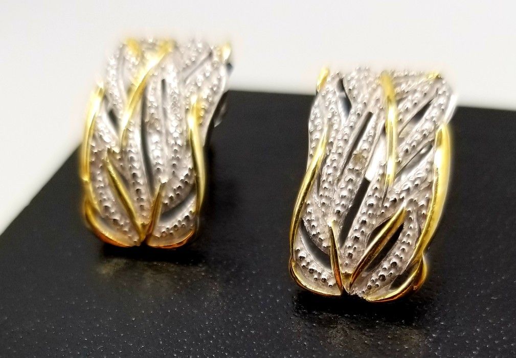 Diamond Accent Earrings, in 14K YG in Platinum over Sterling Silver. TDW 0.010) New. Gift box included. Great Valentine's Day Gift