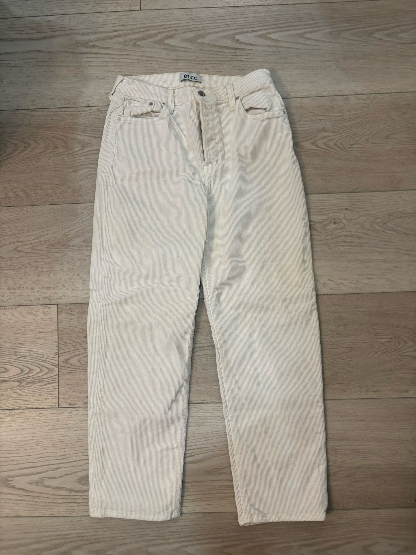 Ética Tyler Boy Straight Cream Corduroy Pants Size 29 Button Fly Preloved