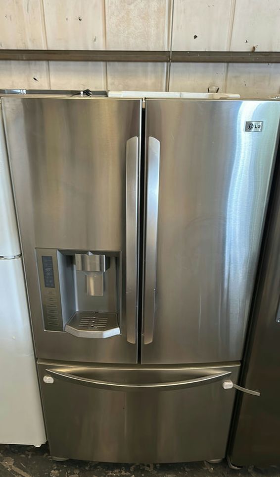 This LG refrigerator looks sleek and modern in stainless steel, offering both beauty and functionality. It boasts a French door design, integrated ice maker, and water dispenser. With energy-saving efficiency, this unit is perfect for any home. Comes with 60-day warranty. Same day delivery available. DM / Message us for more info. Hablamos español.