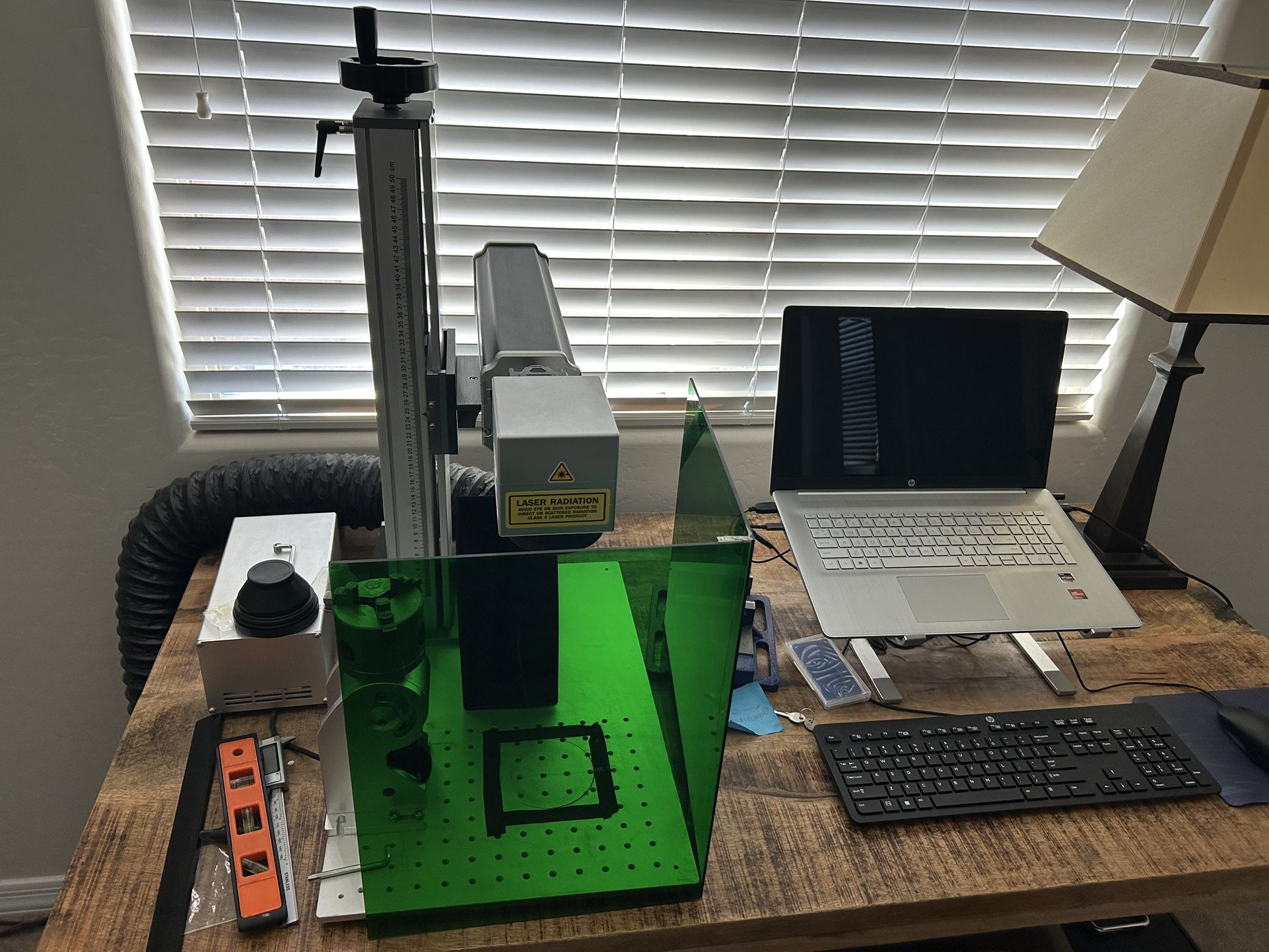 **Unlock New Business Opportunities with Fiber Laser Technology** Looking to expand your business or start a new venture? This powerful 30-watt Fiber Laser offers cutting-edge technology with unmatched precision and versatility. With its advanced capabilities, you can tap into lucrative markets for engraving fine details on a variety of materials such as metals, leather, and more. **What's included:** - Two high-quality lenses - A dedicated laptop - Exhaust system for safe and efficient operation - Rotary attachment for engraving cylindrical objects Not only does this package come fully equipped, but I will personally provide training to ensure you can efficiently use the machine for your business needs. From creating intricate logos to detailed designs, this laser can deliver professional results for a wide range of industries.