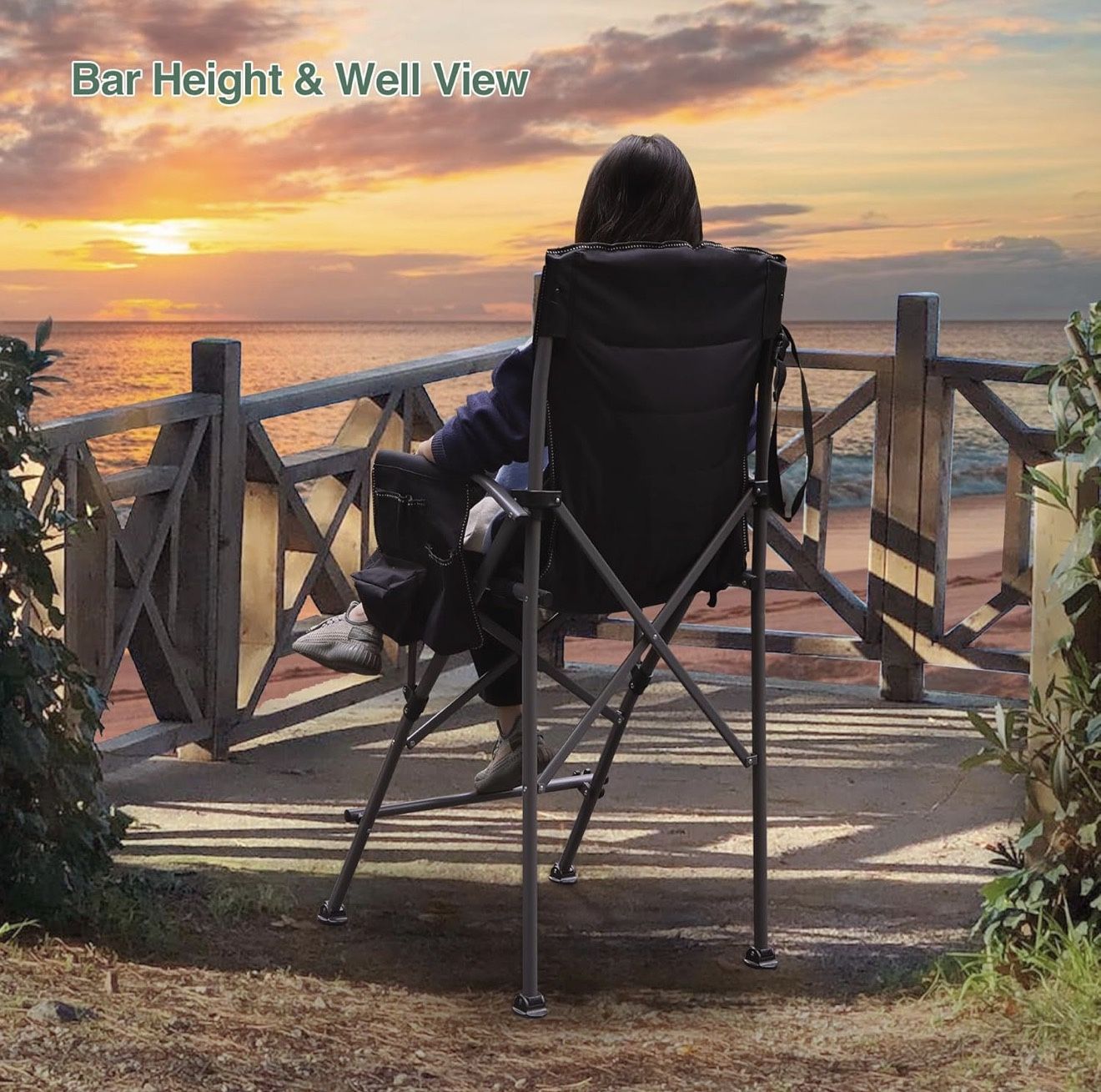 Oversized Tall Camping Chair for Adults, 330lbs Portable High Folding Directors Chair, Foldable Bar Height Stool with Makeup Pocket for Lawn Sport Face Painting, Black