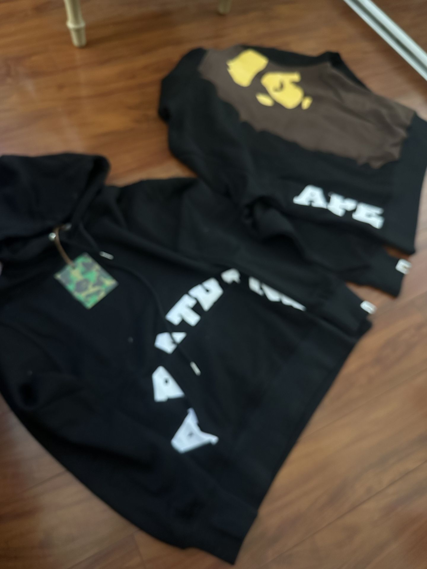 Black BAPE Hoodies Sizes: M, L, XL Price: 100 Condition: Brand new Black BAPE hoodies featuring bold front lettering and the classic ape‑head graphic on the back. DM for sizes and offers.