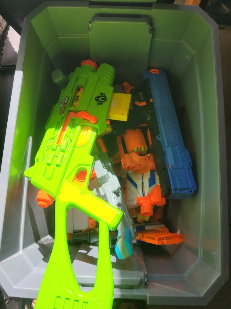 Bin Full Of Nerf Guns And Bucket Of Brand New Bullets