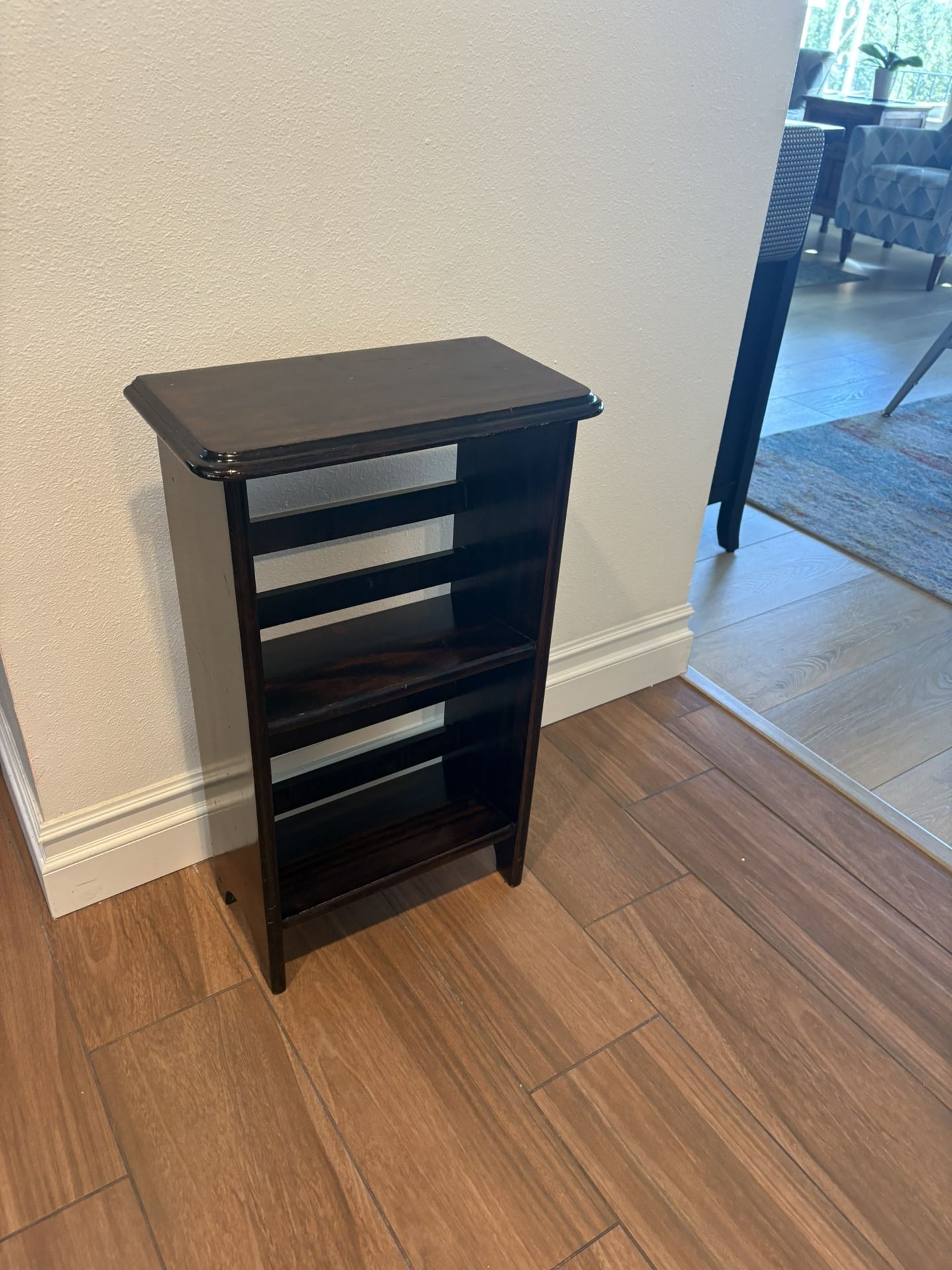 Solid wood (heavy), 2 tier, dimensions are 28 H x 17 W x 9 D, pick up in Rancho Cucamonga