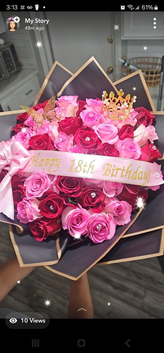 36 roses for $120 any color, comes with any add ones butterflies, crowns, or signs, diamonds on roses