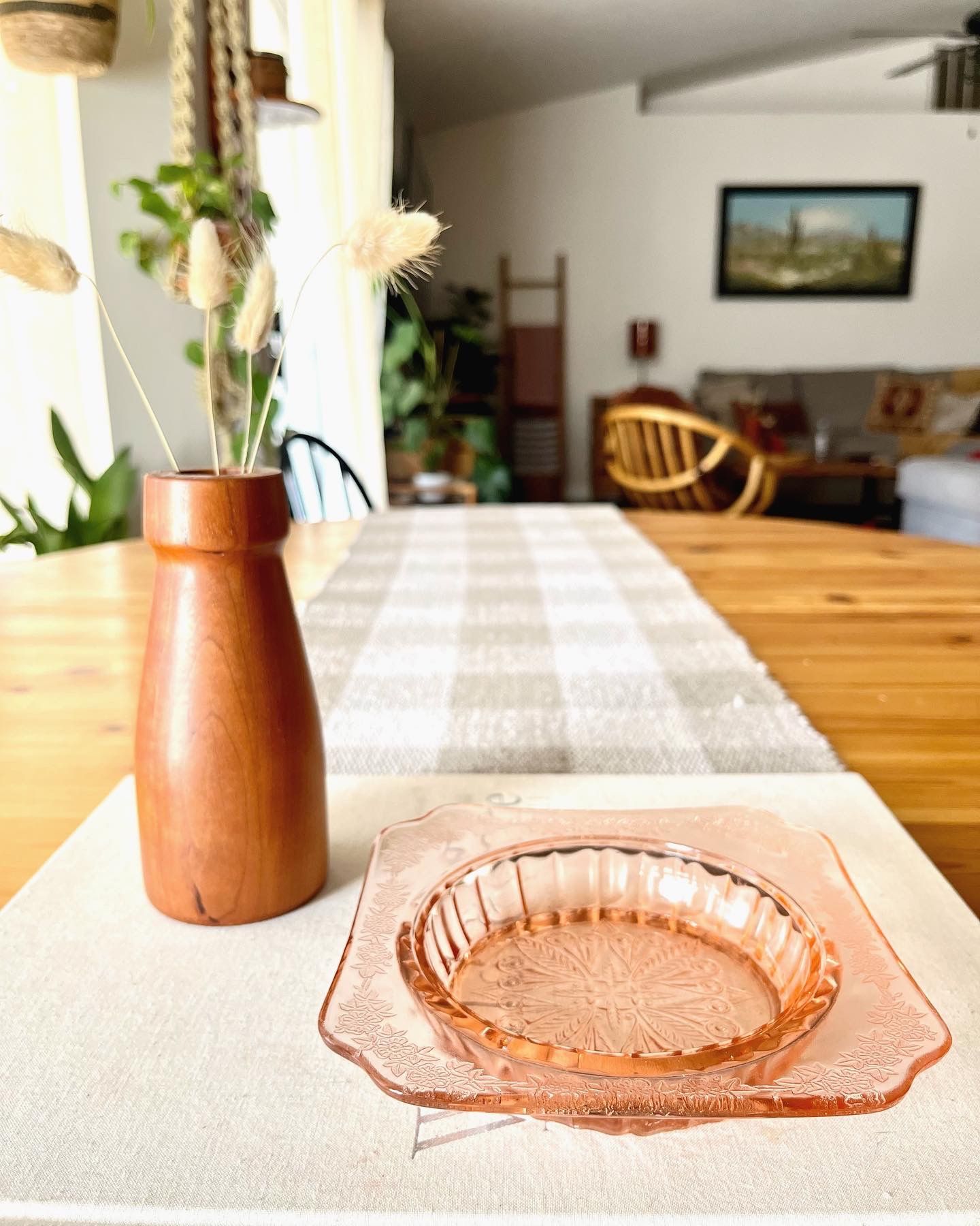 Vintage Jeannette Adam pink glass ashtray/trinket dish