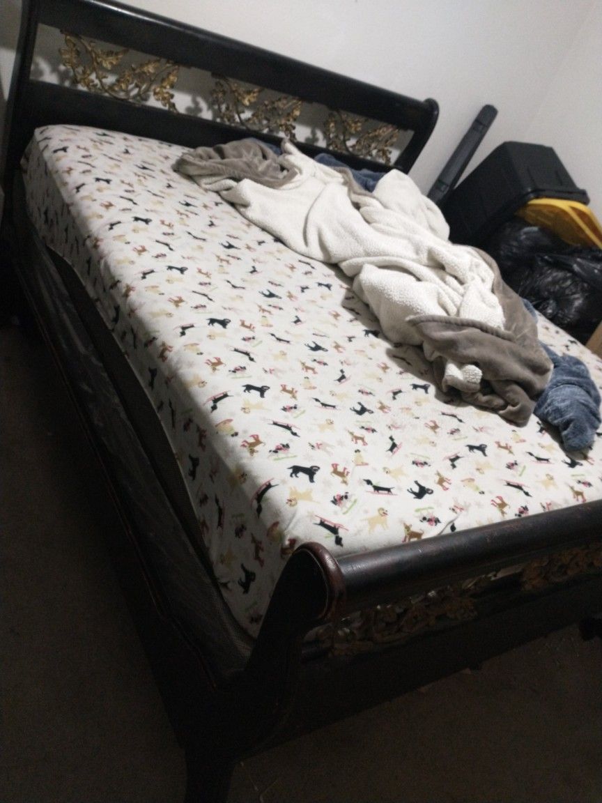 Cal king bedroom set with bench $650 China cabinet $150 2 Villa pictures frames $50 Leather recliner with 3 foot rest $90