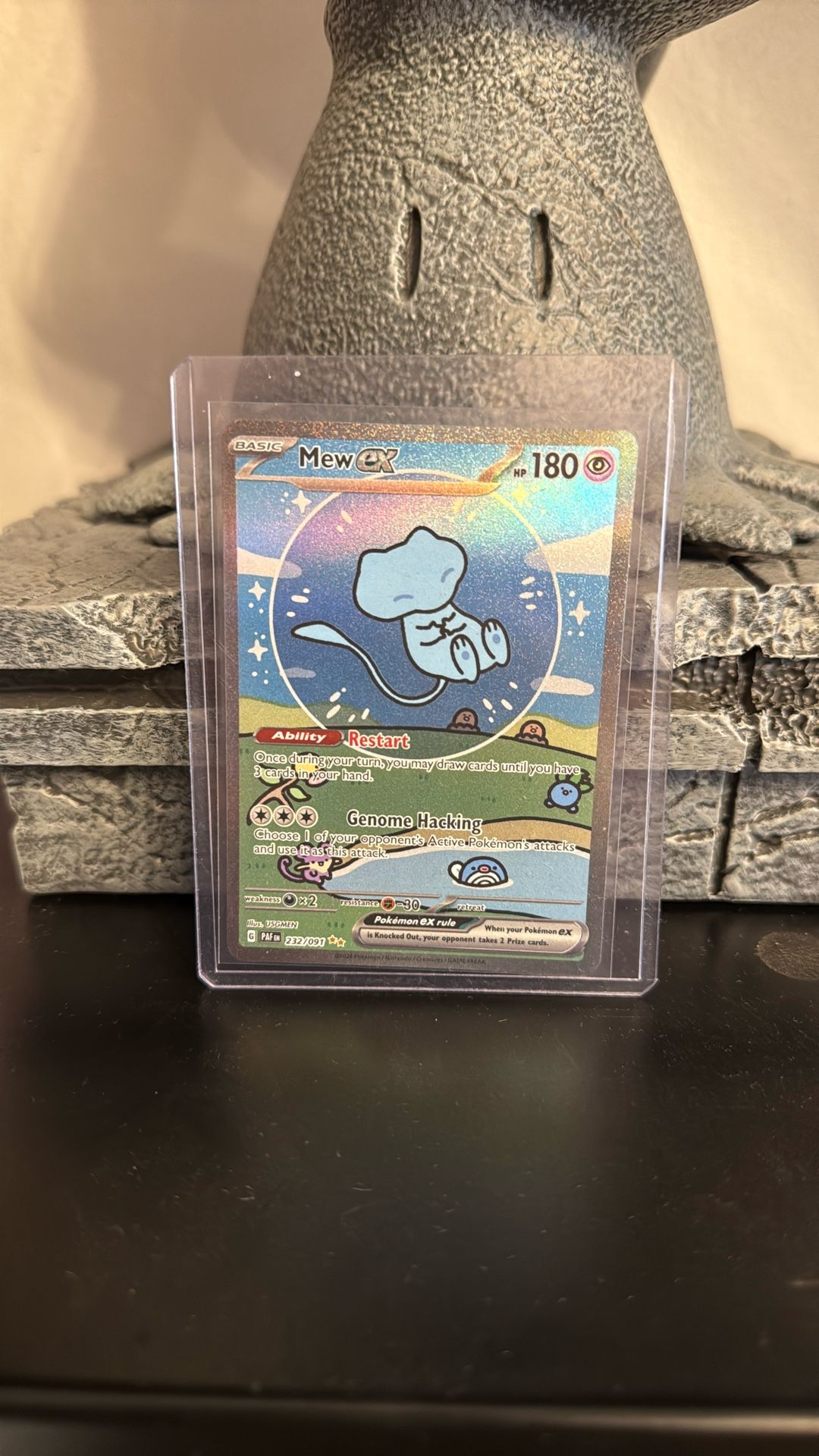 Product Details Card Number / Rarity:232/091 / Special Illustration Rare Card Type / HP / Stage:Psychic / 180 / Basic Card Text:Ability — Restart Once during your turn, you may draw cards until you have 3 cards in your hand. Attack 1:[3] Genome Hacking Choose 1 of your opponent's Active Pokémon's attacks and use it as this attack. Weakness / Resistance / Retreat Cost:Dx2 / F-30 / Artist:USGMEN
