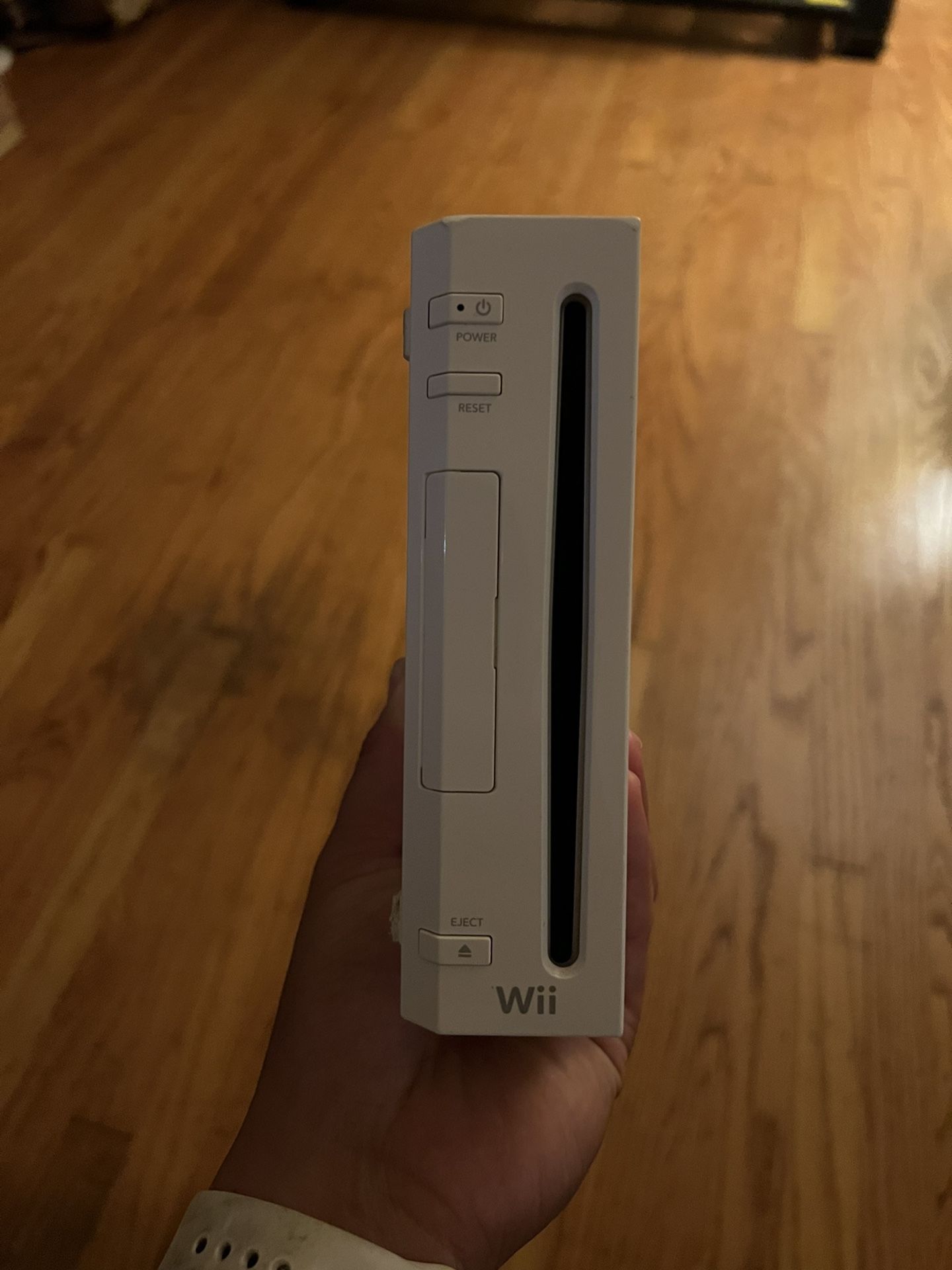 Nintendo Wii. Good condition. No cords or controller, just console box itself. I lost cords and controller, but worked great last time used, which was a few months ago.