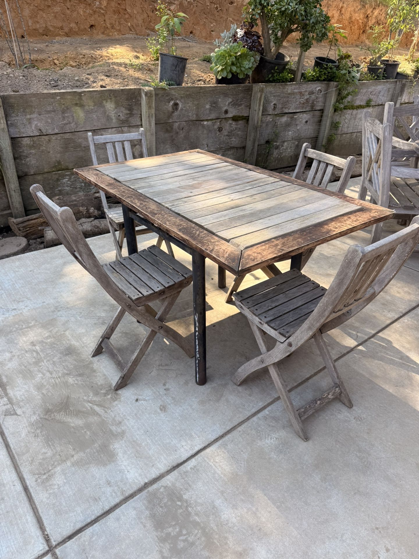 Outdoor Wooden Table w/ 4 Foldable Chairs