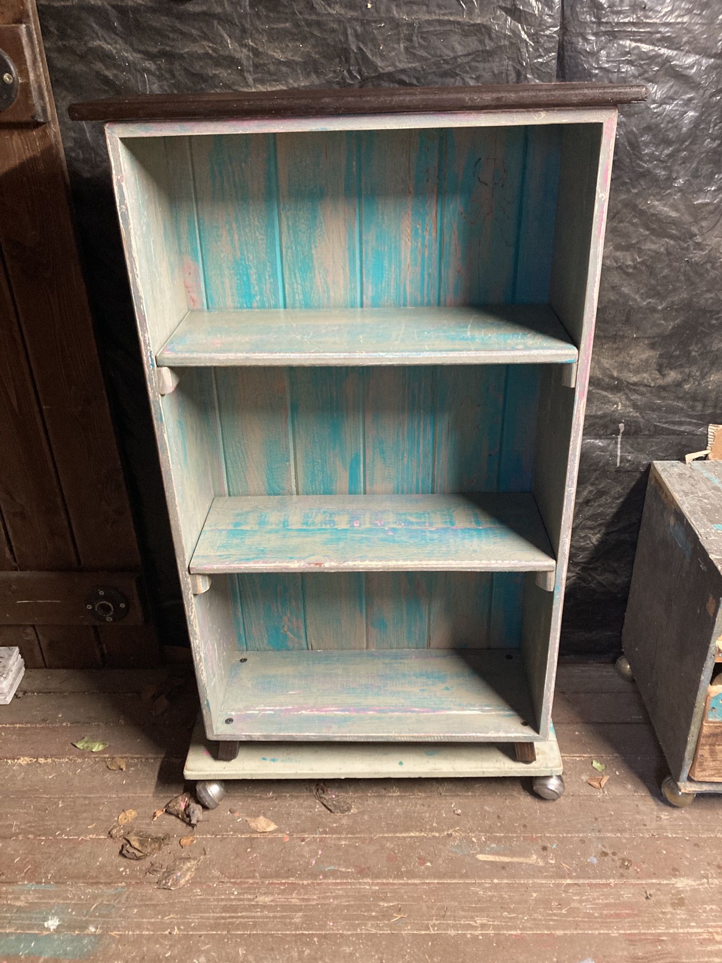 Shabbyish chic bookshelf, all wood no particle board here. 46” x 25” x 9”. Handmade from salvaged wood