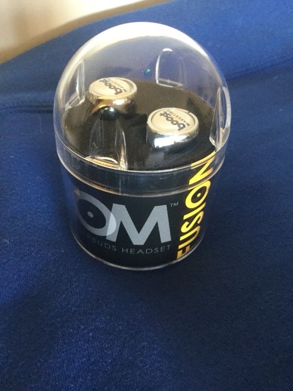ATOM * Fusion Wireless Earbuds Headset. NEW IN PACKAGE * Innovative design gives you the choice! The ATOM Fusion Wireless Earbuds Headset allows you to use the ATOM as a single earbud or “fuse” the earbuds together with a thin connecting cord for stereo sound. Listen to music, make and receive phone calls and activate Siri or Google with the built-in microphone. Works up to 30 feet from your phones, tablet, or computer. Includes optional ear clips and two sets of three sizes of double-flange silicone ear tips for each earbud. Choose mono or stereo configuration Talk/Listen time: up to 3.5 hours, Standby Time: 40 hours, Charge Time: 1 hour Rechargeable lithium battery charges with included micro-USB cable. Double-flange ear tips secure earbuds in your ear to provide great sound quality