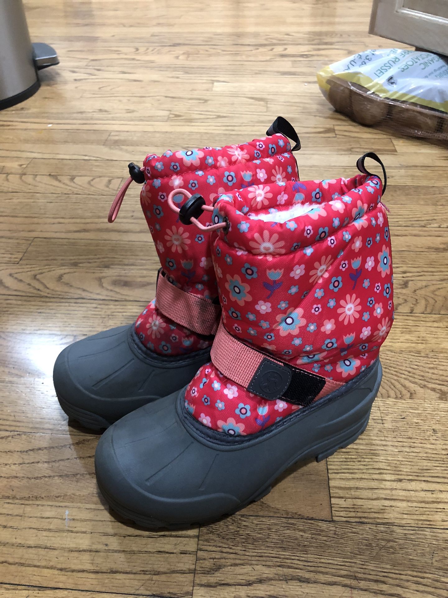 Great condition. Warm fleece inner liner. Super comfy boots. Cinches at the ankle and at the top of the boot for a snug fit. Tough tread on the sole to keep your little from slipping in the snow.