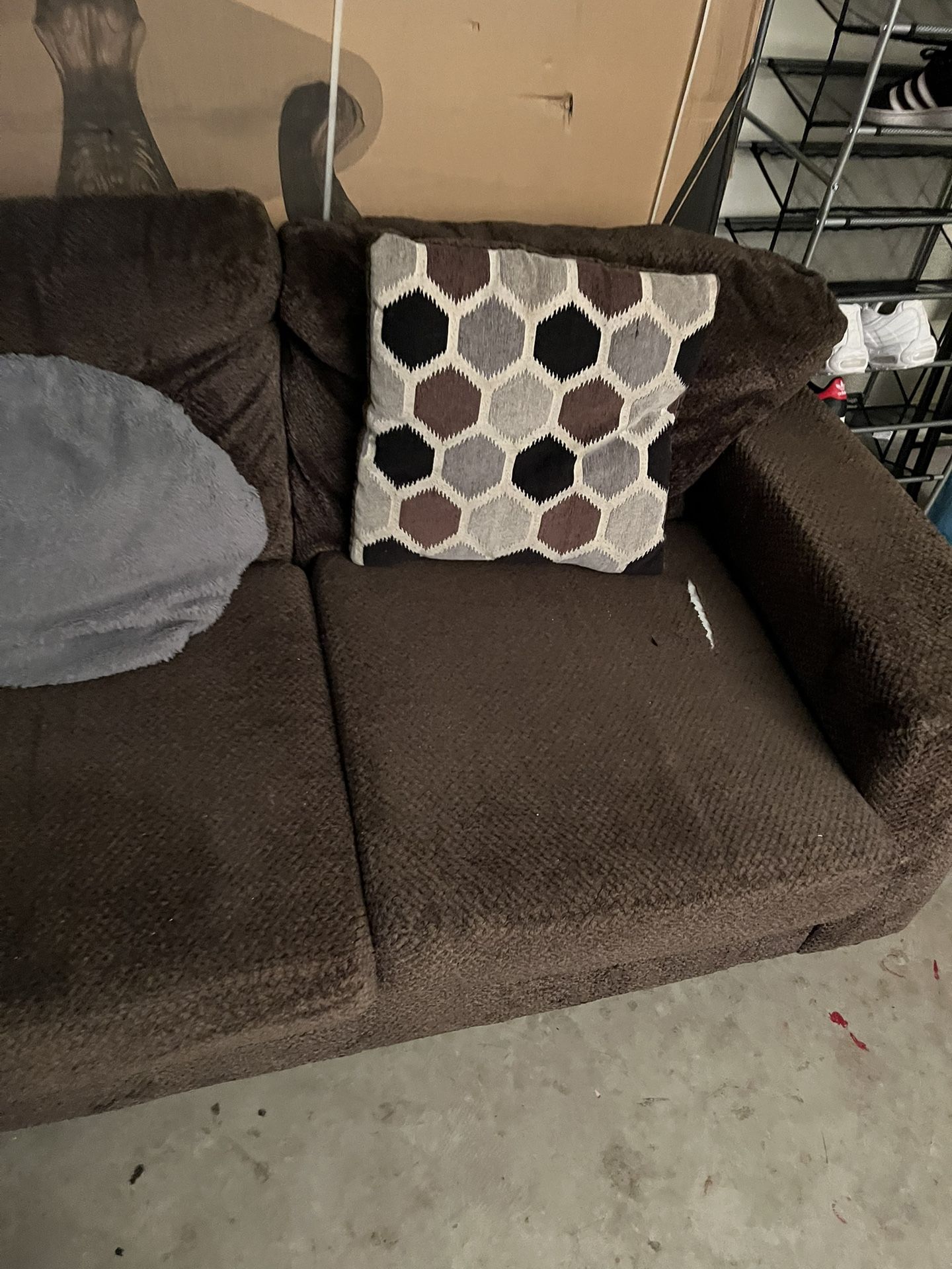 Brown sectional couch with a slight rip in it. No bed buds or any other bugs. Very comfortable and can move ottoman to either side of the couch. Pickup only. Asking $180 or obo. Serious inquires only.