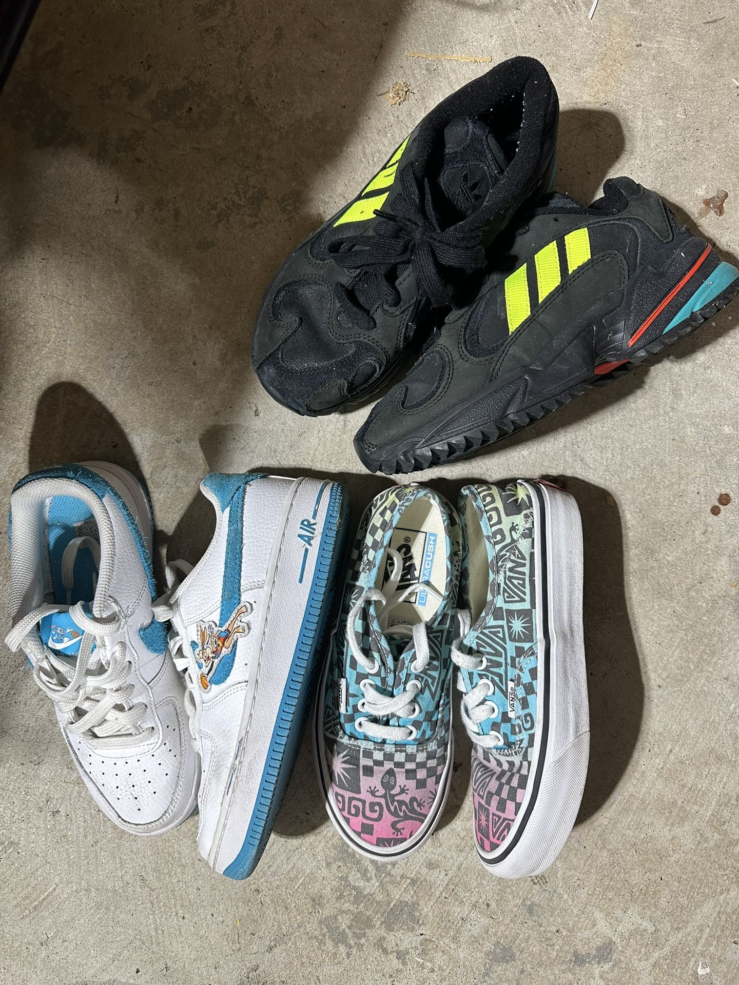 4.5 Y Nike Air Force1 bugs bunny 30$ 4 adidas Torsions 20$ 4 vans 10$