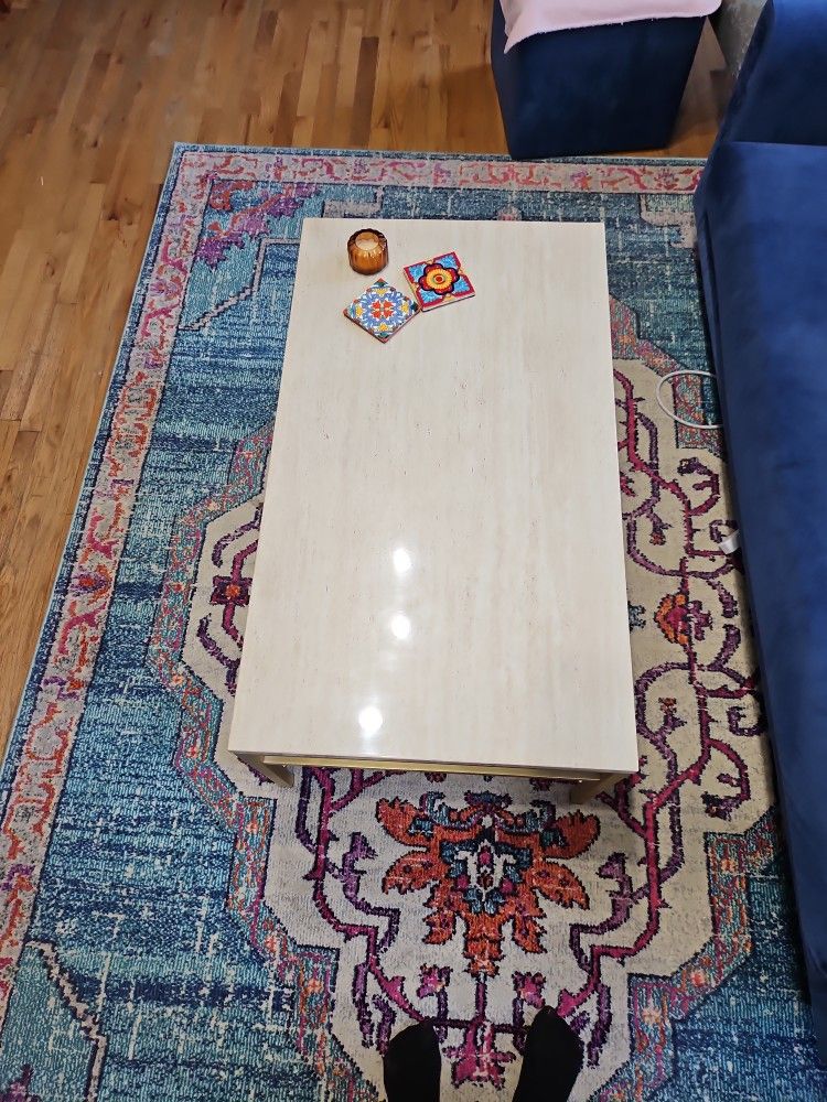 An elegant addition to any living space. • Faux marble and brushed gold metal coffee table • 42" L x 24" W x 18" H • Lightweight yet sturdy Has some small blue and red marks as indicated in the pictures. Pickup only - Rogers Park