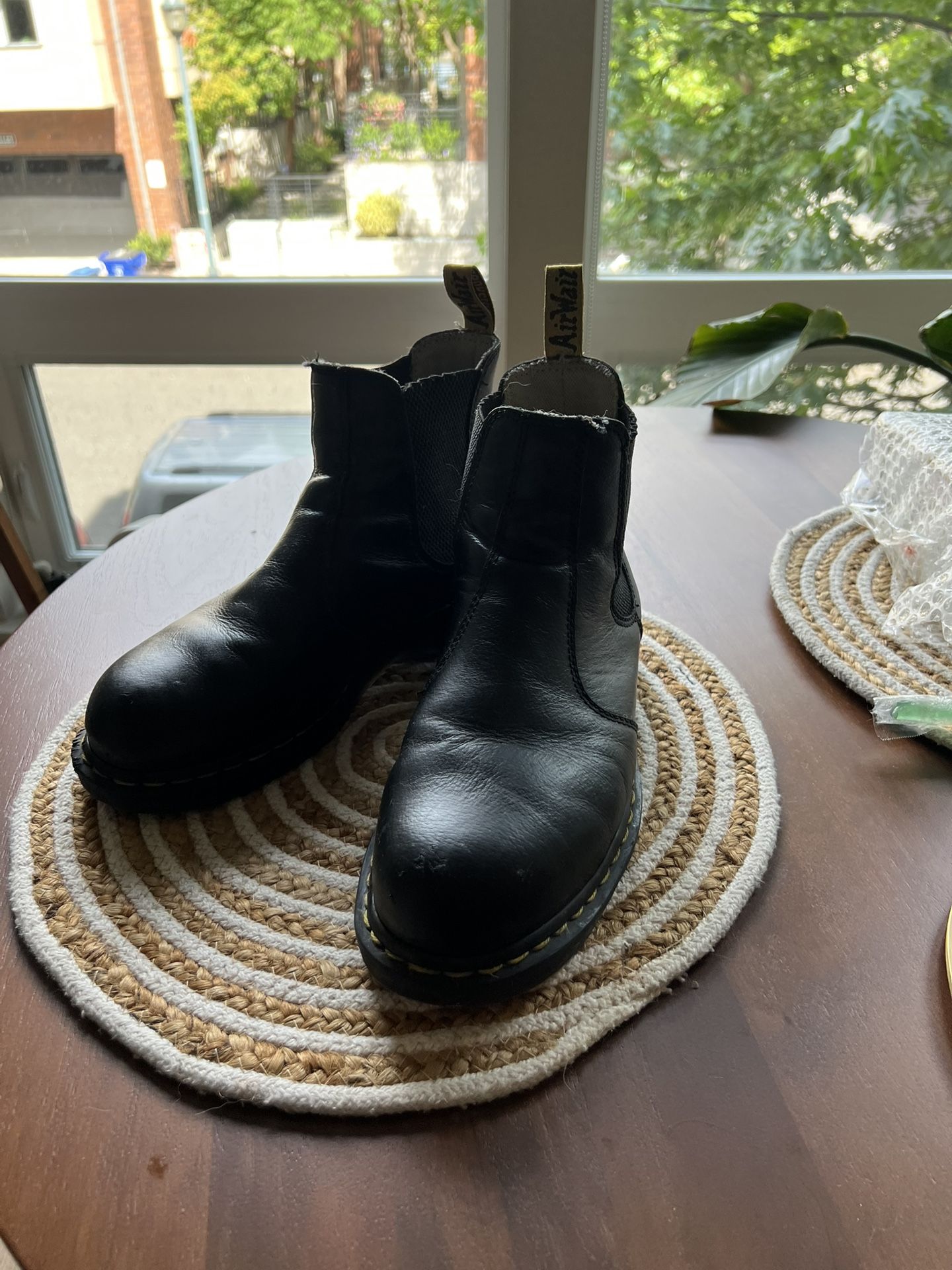 Got these a few years ago, tried to break them in to a comfortable fit but I just decided that they’re simply too small for my foot size. I’d love for them to go to another person who could give them love. They have a normal amount of wear and mild cosmetic scuffing on the toe of the left boot. They need new sole inserts, otherwise they’re still a great pair of boots.