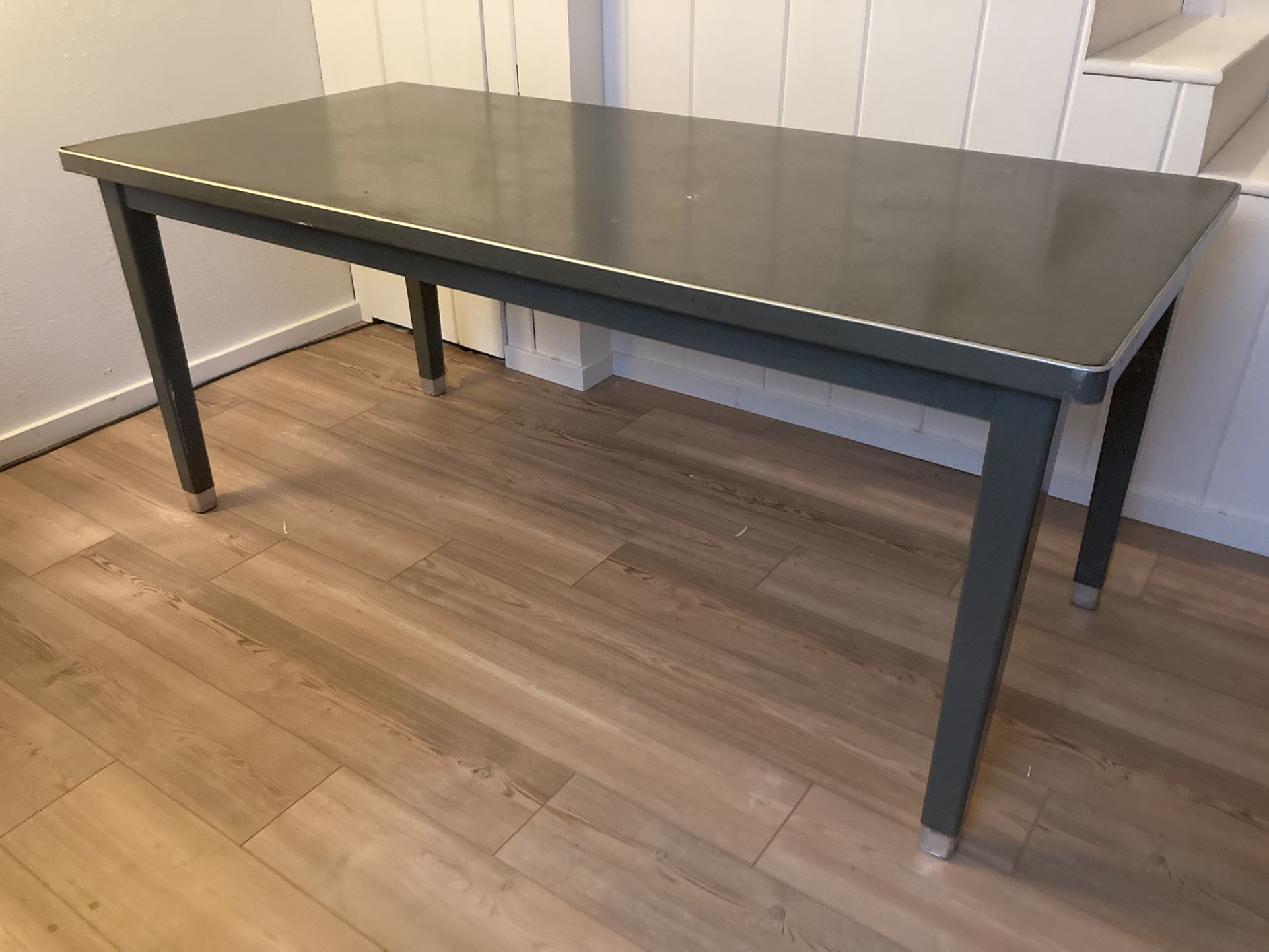 Vintage Table Science Department- see the tiny tag Desk Two slide out drawers Metal, it’s heavy See photos for measurements, it’s 6x almost 3 ft.