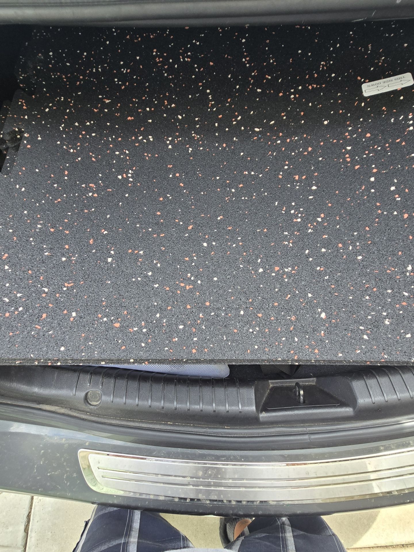 34 pieces of terra red and white rubber floor tiling, 5/16 thick, will cover 136 sq. feet. $100 for all 34 pieces or best offer