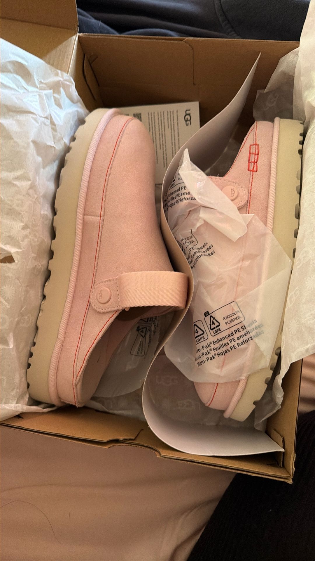Pink Uggs love clog 26 size 10 came with a stain inside the shoe (not noticeable when worn) Paid $140 plus express shipping for these