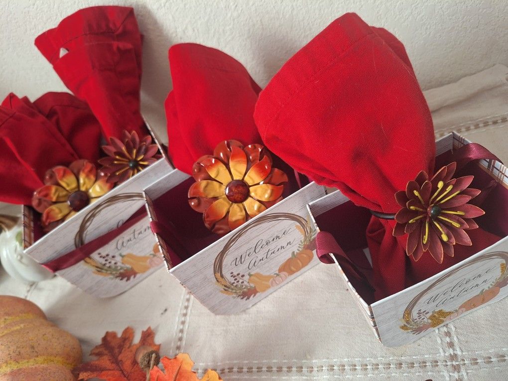 Ceramic, plastic, foam Pumpkins, decorative baskets, napkins with 2 napkin ring sets, a turkey, decorative leaves, candle holder, and electric light with lights in it. 2 vases with fake flowers.