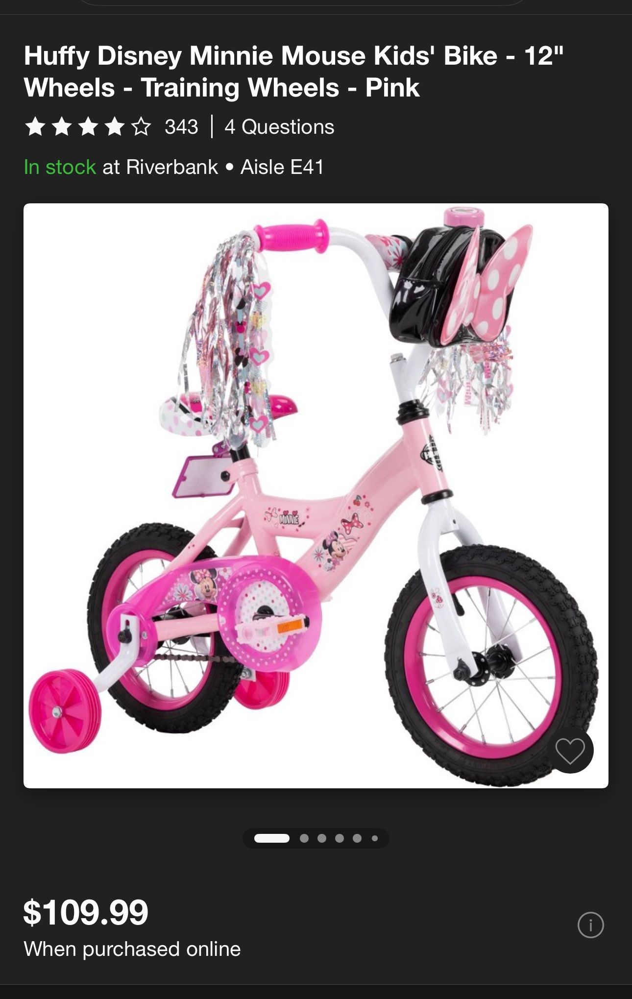 Open box! Huffy disney Minnie Mouse kid’s bike- 12” wheels- training wheels, Pink Perfect for New Riders: Ideal for kids aged 3-5 years or with heights between 37-42 inches, the 12-inch wheel size ensures the perfect fit for young riders. Dimensions (Overall): 16 Inches (L), 35 Inches (H) x 26.5 Inches (W) Holds up to: 60 Pounds Suggested Age: 3 Years and Up