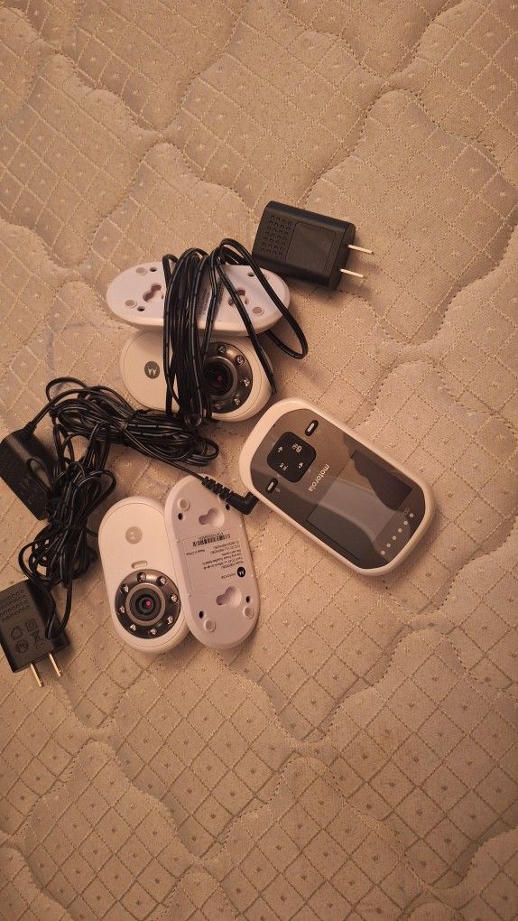 2 camera system. Motorola baby Monitor. Or video camera system. Speak through, color and night mode.