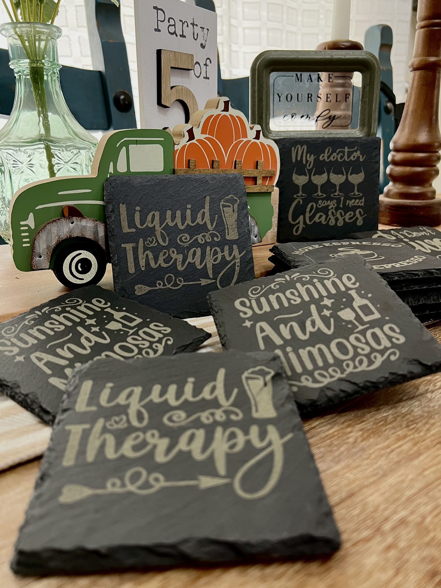 Custom Engraved 4”x4” Slate Coasters Many different designs. Set of 6 for $15