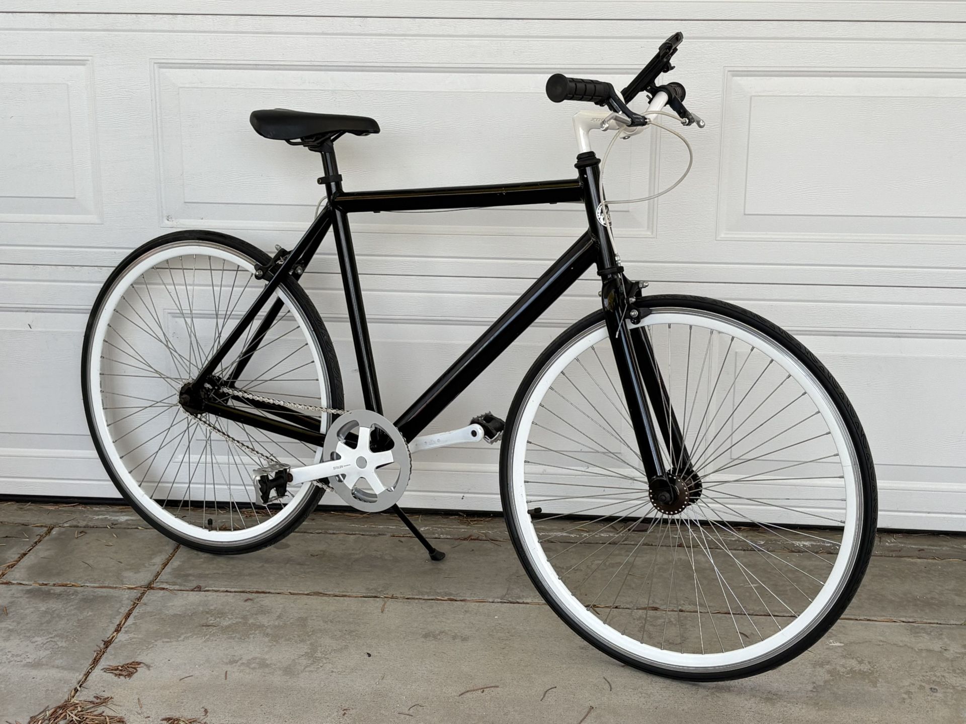 Super slick Mongoose Aluminum Frame Fixie Bike - 700c wheels with front and rear hand brakes - Lightweight Aluminum Frame - Large 21” Frame - Front Phone Holder - Comfortable hand grips - Super Clean and Lightweight Bikes looks awesome, super slick and rides very smooth! Reach out with any questions