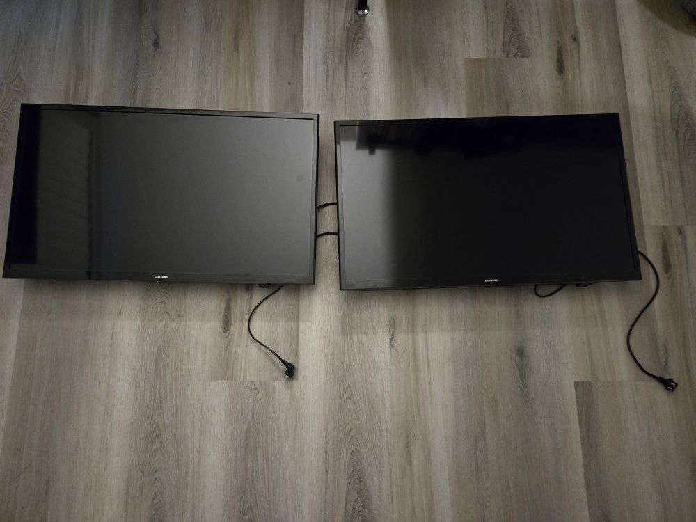 Samsung tvs they work perfect 32 inches Smart tvs Hmu if you want 1, $60 For both, $100 Also comes with wall mounts