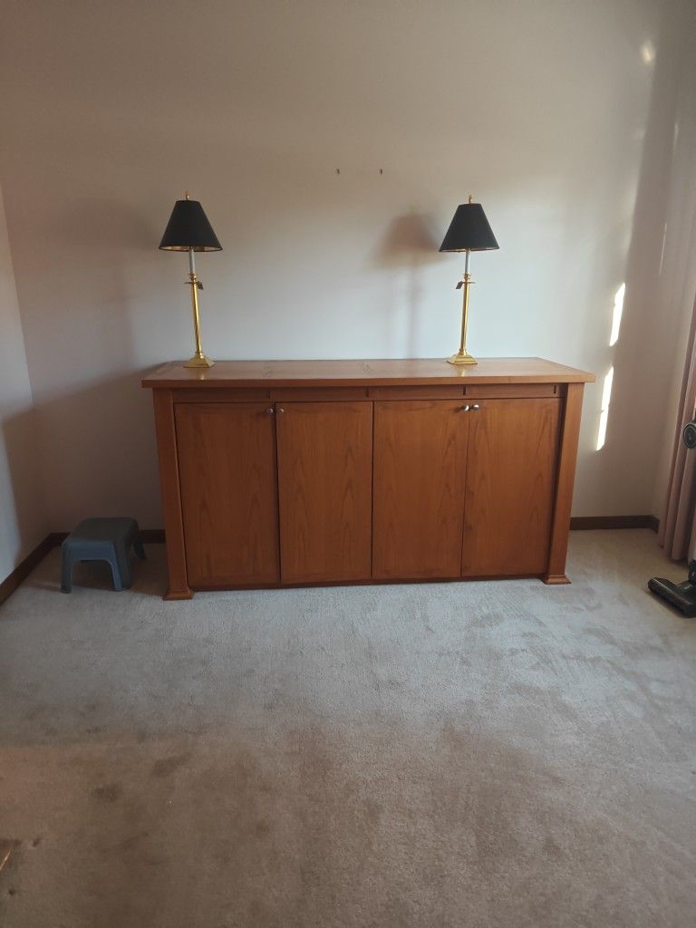 Free sideboard. Please refer to photos. A custom built peices of furniture by Precision Woodworking in Elburn. Must be picked up by 12/22. Quit heavy, you will need 4 strong adults to move this.