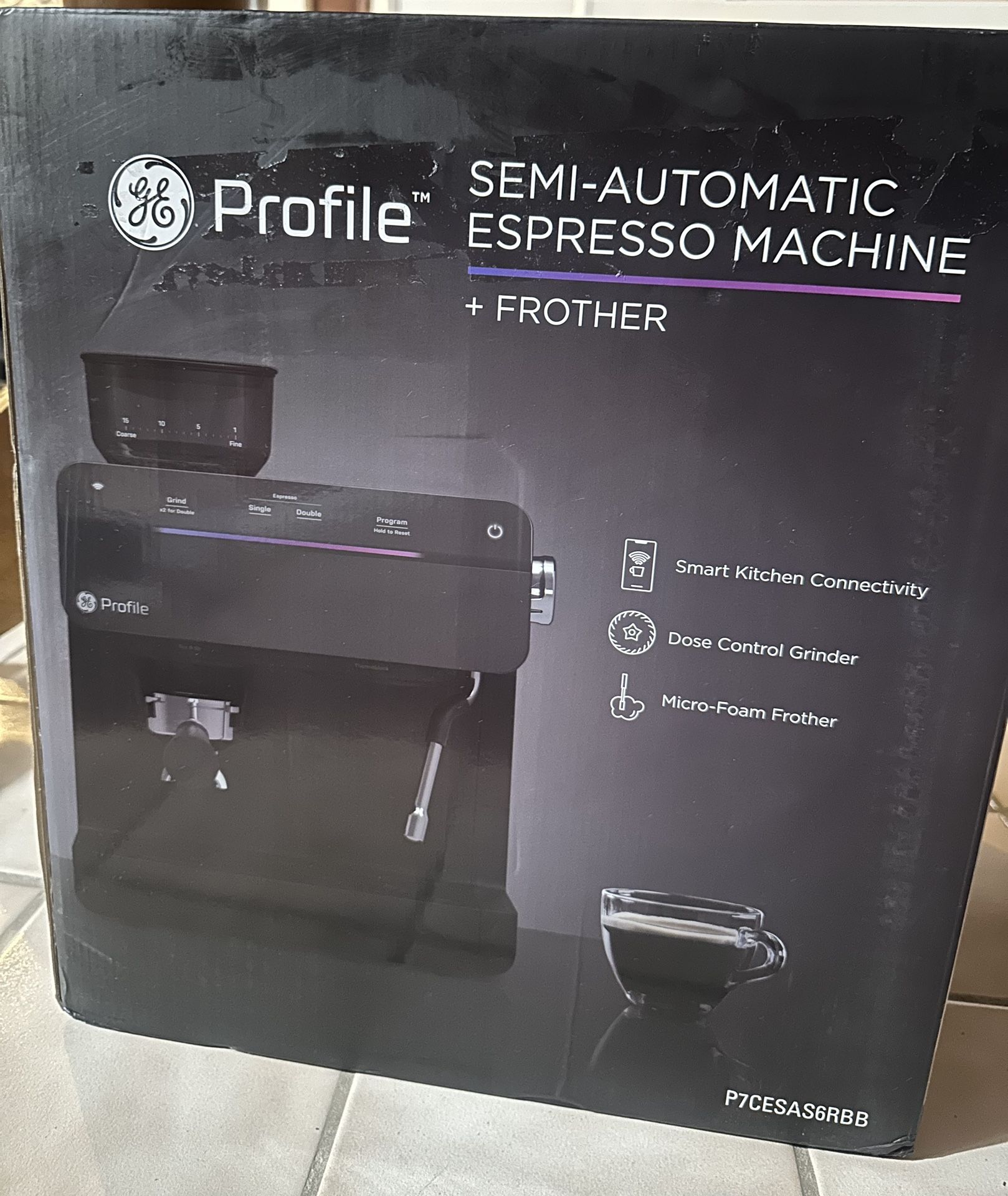 GE Profile 1- Cup Semi Automatic Espresso Machine in Black w/ Built-in Grinder, Frother, Frothing Pitcher, Wi-Fi Connected