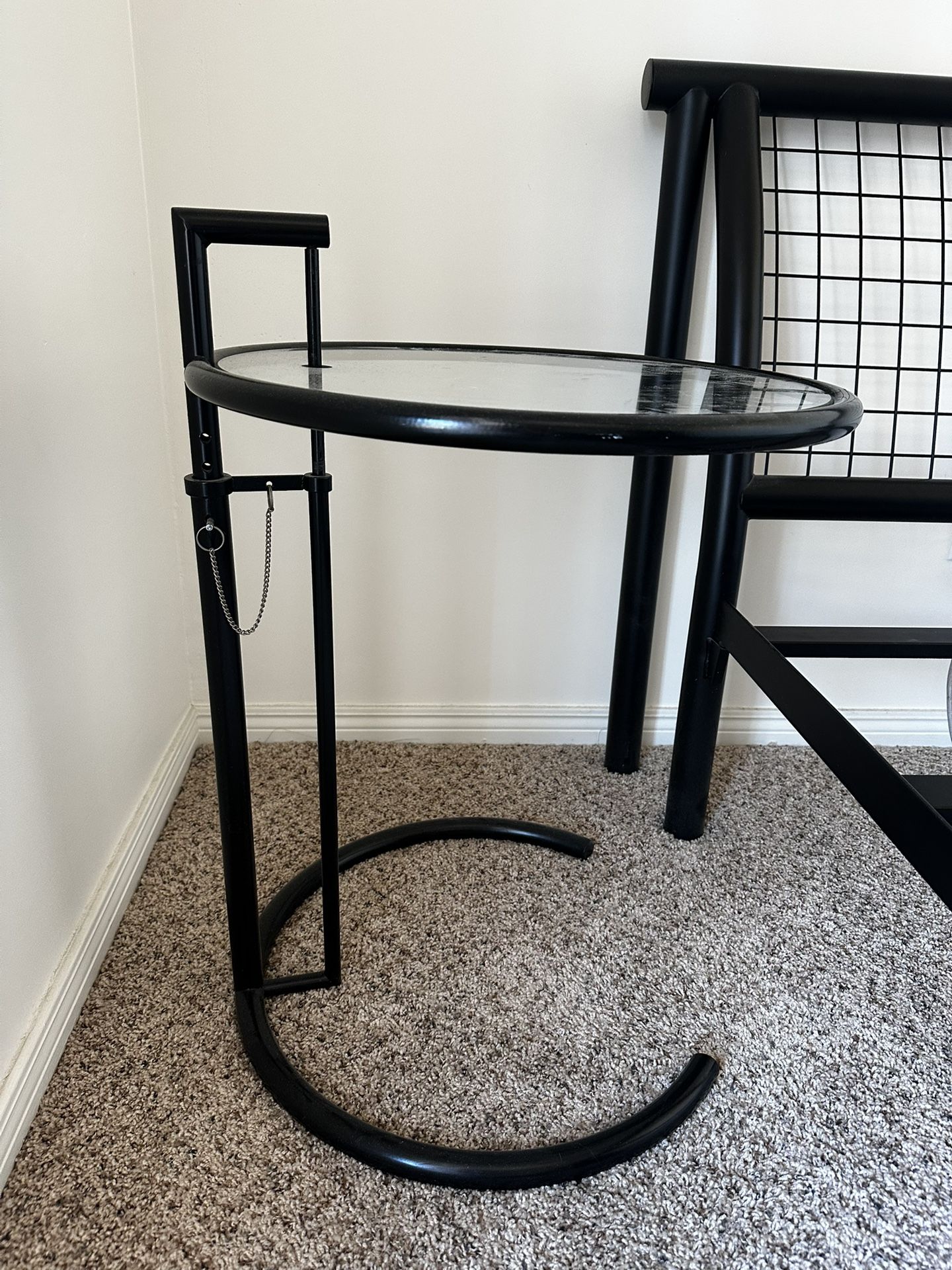 Midcentury Modern Eileen Gray Style Black Round Adjustable Side Table