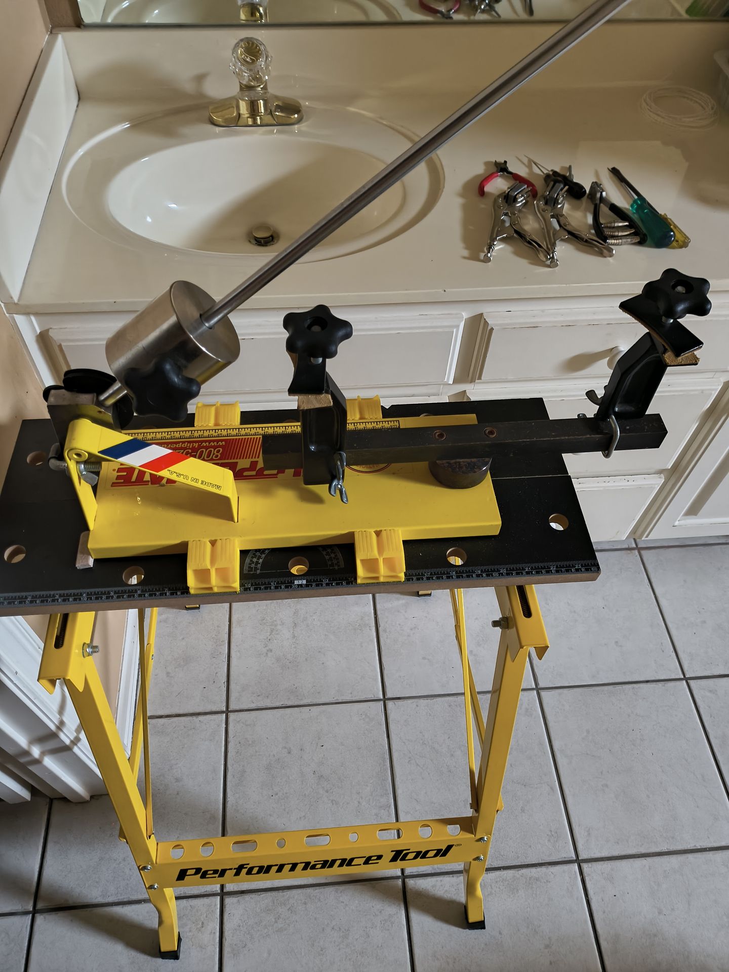 Klippermate drop weight tennis stringer Full set up in very good condition. Includes all tools and clamps pictured. Ready to string your next racquet with nothing else needed. I am also including a custom stand up table (pictured), 2 full packs of string, a starting clamp, awls and 2 large binders of stringing instruction and reference material from the Stringers Association. The stringer itself on Amazon is over $350 which doesn't include the stand, additional tools, string and reference material binders. Get it for almost half price. It will pay for itself after less than 10 string jobs.