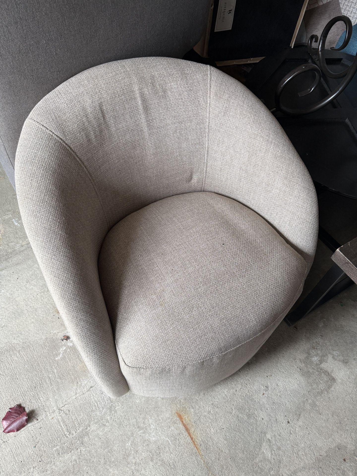 Beautiful modern swivel barrel chair in a soft beige tone. This chair has a clean, sculptural look that works well in a living room, bedroom, office, reading corner, or staging setup. It is comfortable, supportive, and swivels smoothly, making it both stylish and practical. Features: • 360-degree swivel • Modern barrel silhouette • Neutral beige upholstery that works with almost any decor • Comfortable curved back and deep seat • Great as an accent chair, vanity chair, lounge chair, or office guest chair Approximate dimensions from the Wayfair Arrun chair listing: about 27 in. high x 33.5 in. wide x 30 in. deep, with a 300 lb. weight capacity. The Wayfair product is listed as a swivel barrel chair with velvet upholstery, solid and manufactured wood frame, and no assembly required.