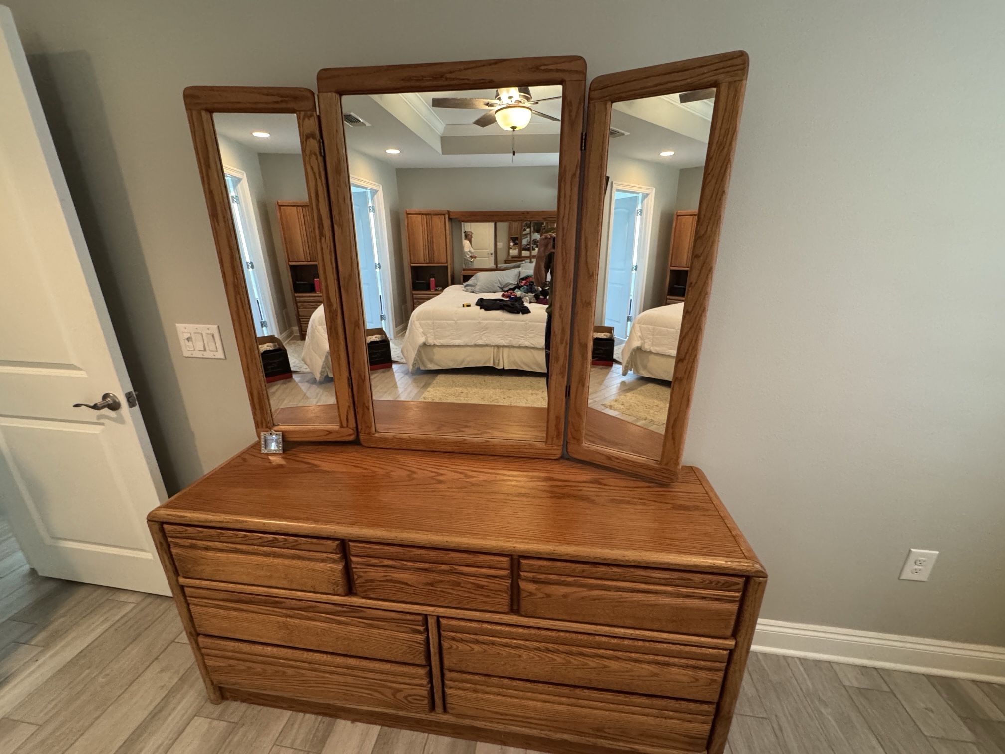 Solid oak headboard/sideboards and bureau. $250 each or $400 for all. Headboard designed for Queen sized bed. Modified to fit King. Can be easily set back to Queen when assembled. Bed not included. Cash only. You pick up.