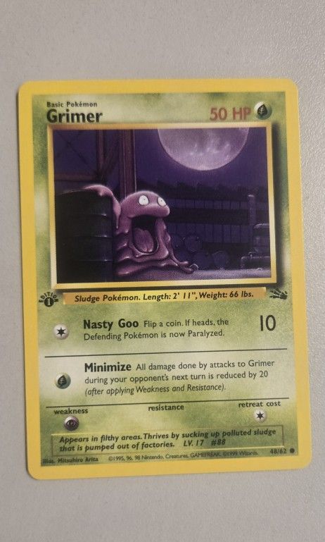 1st Edition Grimer trading card 1999 Pokémon Fossil 48/62