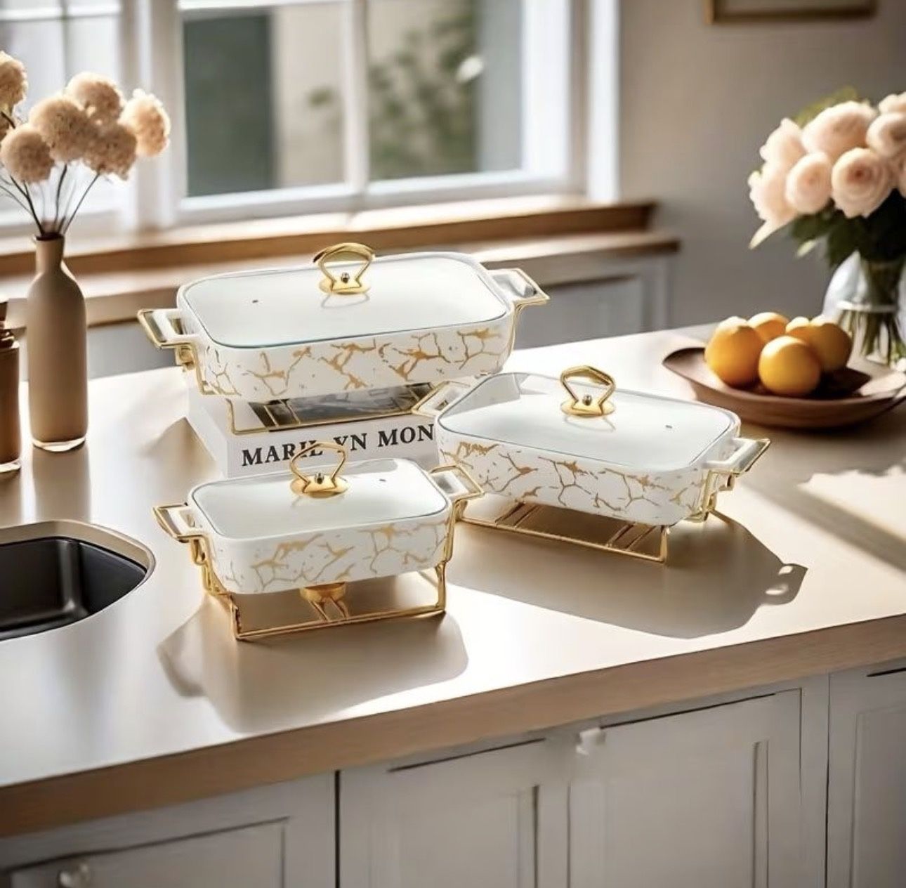 Set, 3 Sets Ceramic Plates for Restaurant Home Use Kitchen Utensils Baking Pan Cooking Pot Soup Pot Suitable for Bread Turkey Cheese Pizza Outdoor Wedding Party Gift Birthday Only for Cooking Brand New still in the box D671)(D671)
