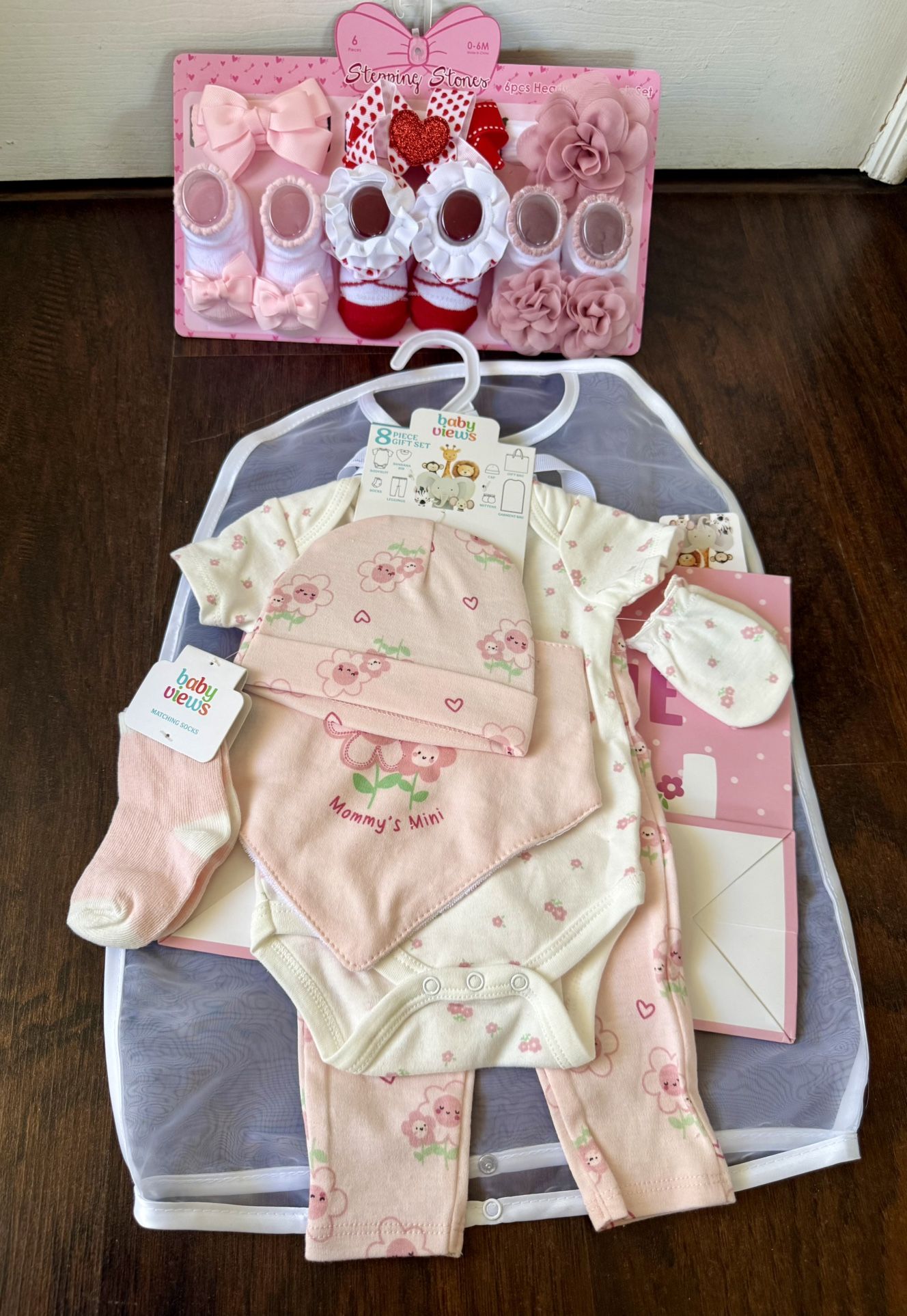 Baby girls set $5 New (with gift bag) Size 0/3 moth Socks 6 moths $5 Fontana Only pick up