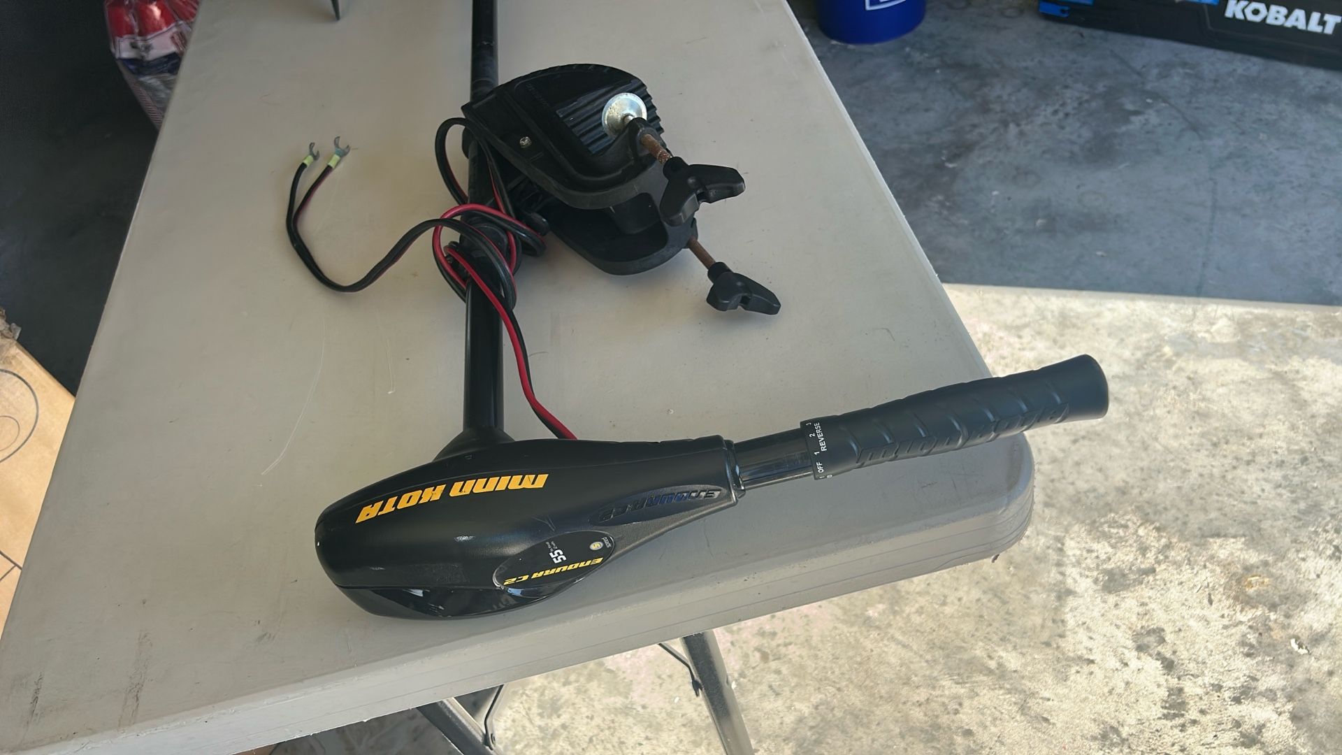 Not brand new, but never even been in water. Purchased a while back, had intentions of buying a small bass boat from a buddy, but never did. Just been sitting in my garage. Never even bought a battery so if you want to bring one to see that it works, no problem…$100 . IF ADD IS STILL UP, ITS STILL AVAILABLE. NO LOW BALLING.