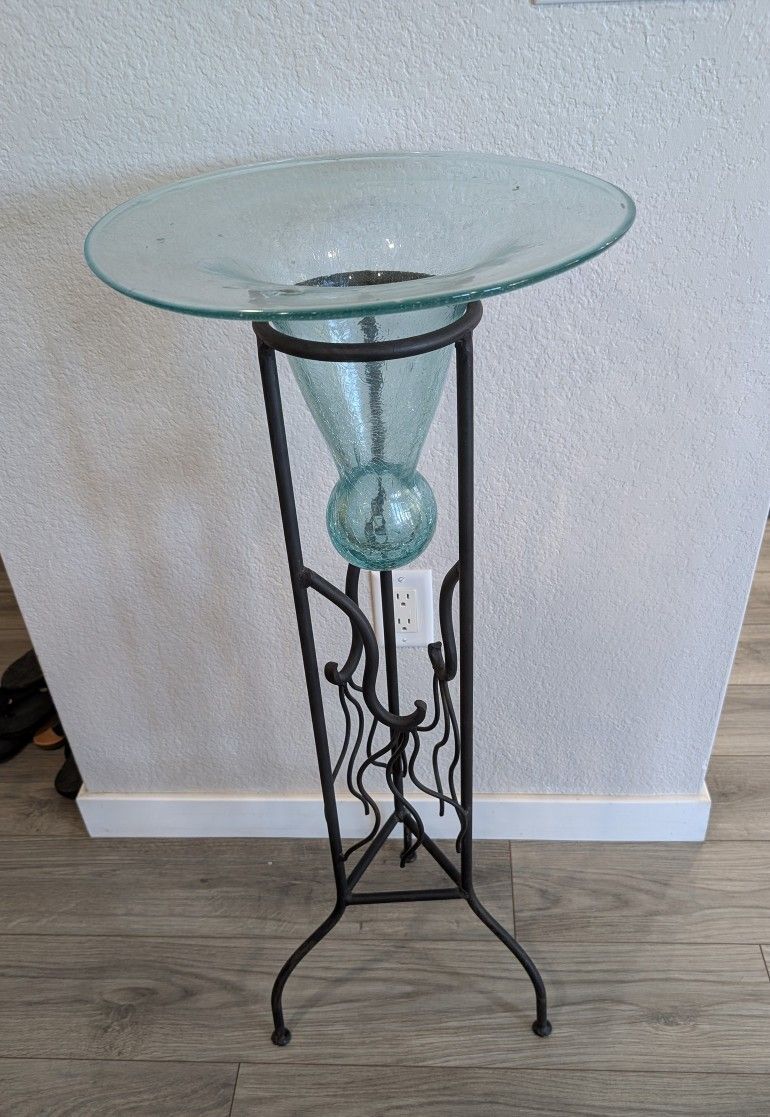 Vintage Metal Iron Jardiniere Decorative Plant Stand w Crackled Glass Vase Absolutely gorgeous! Approximately 38" tall.