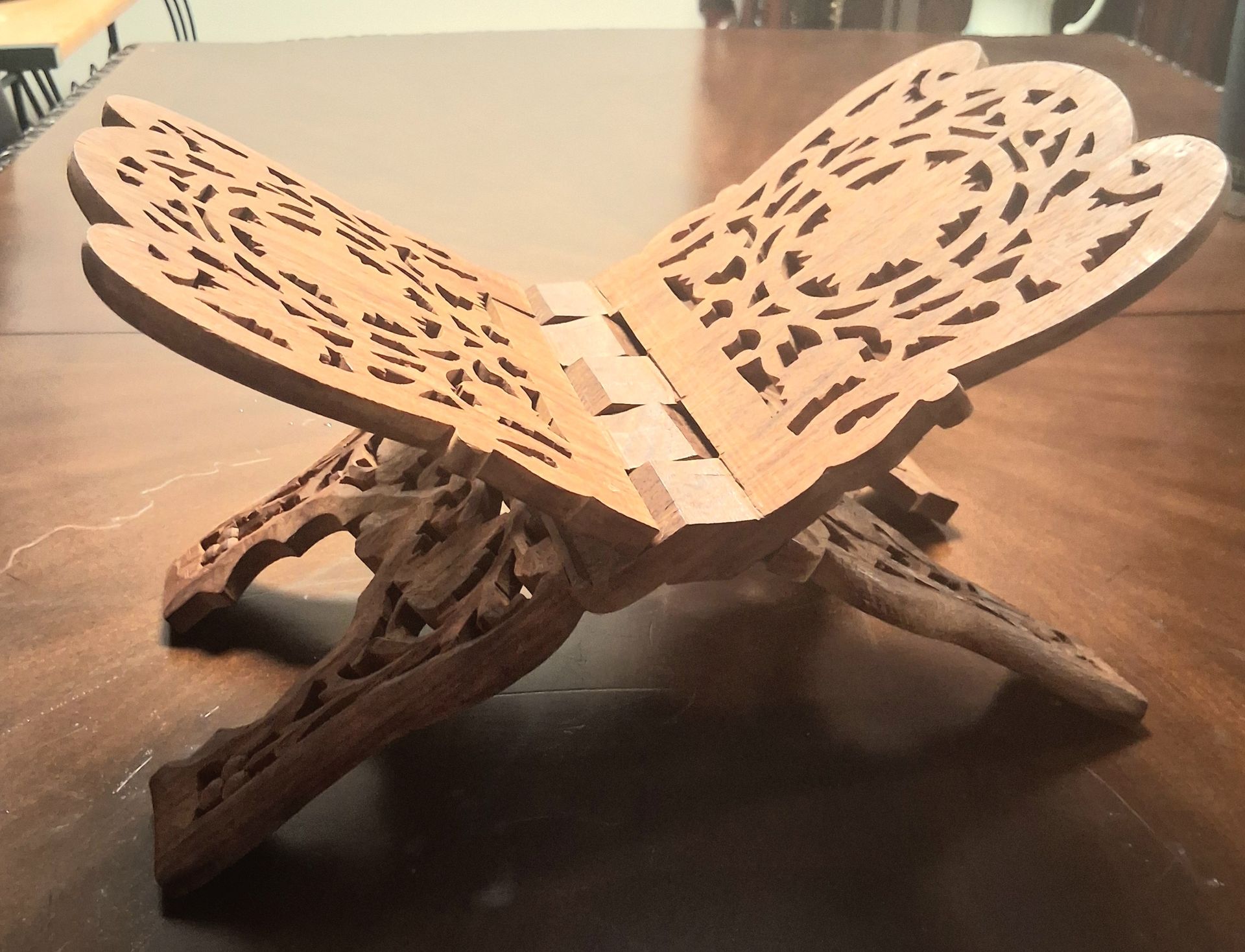 Hand Carved Wooden Folding Book Holder